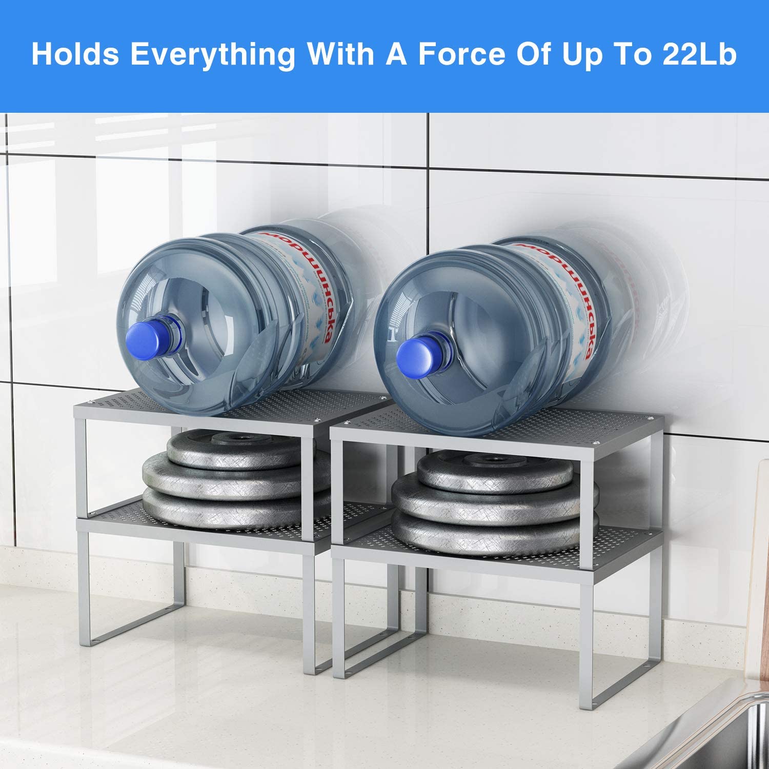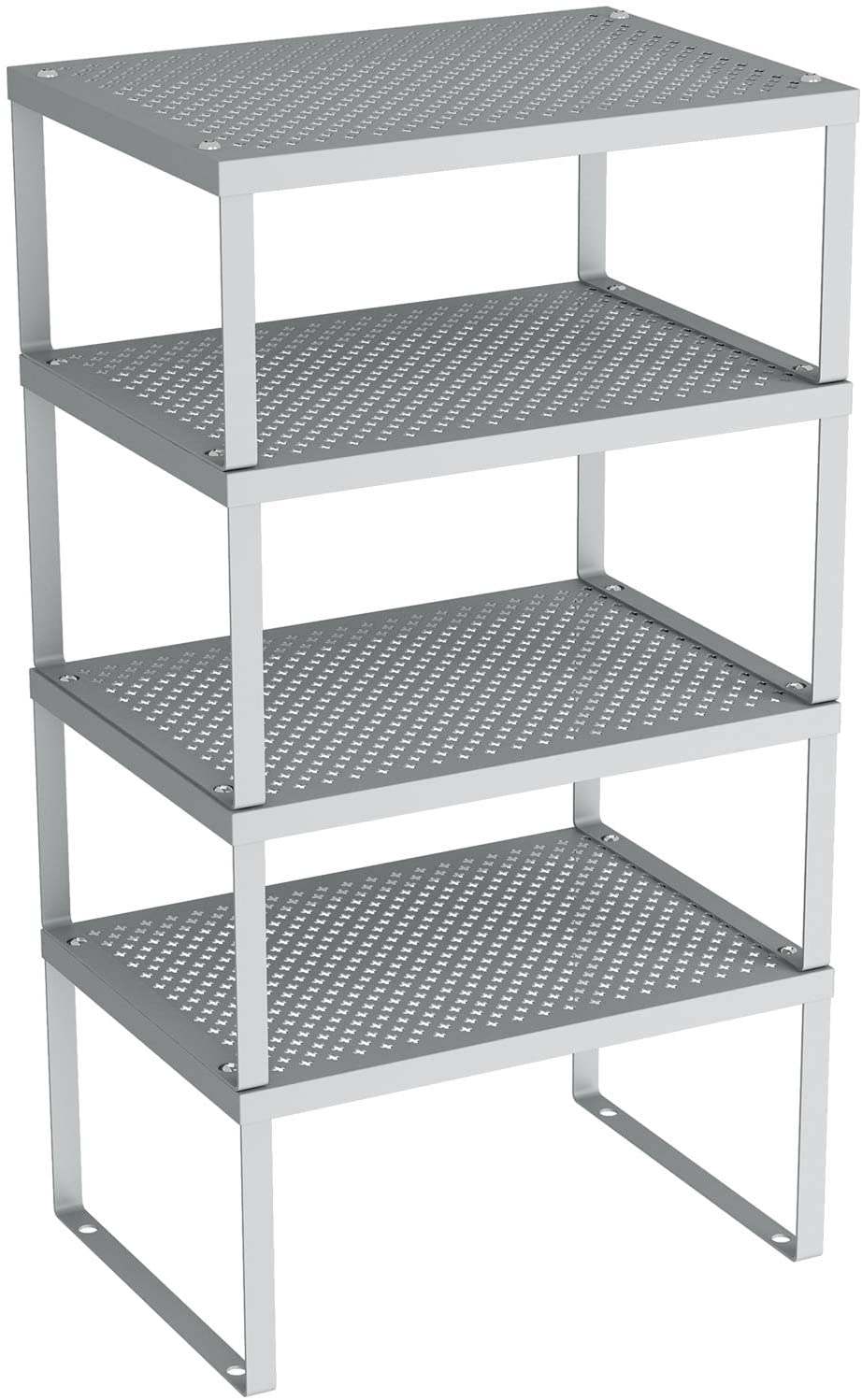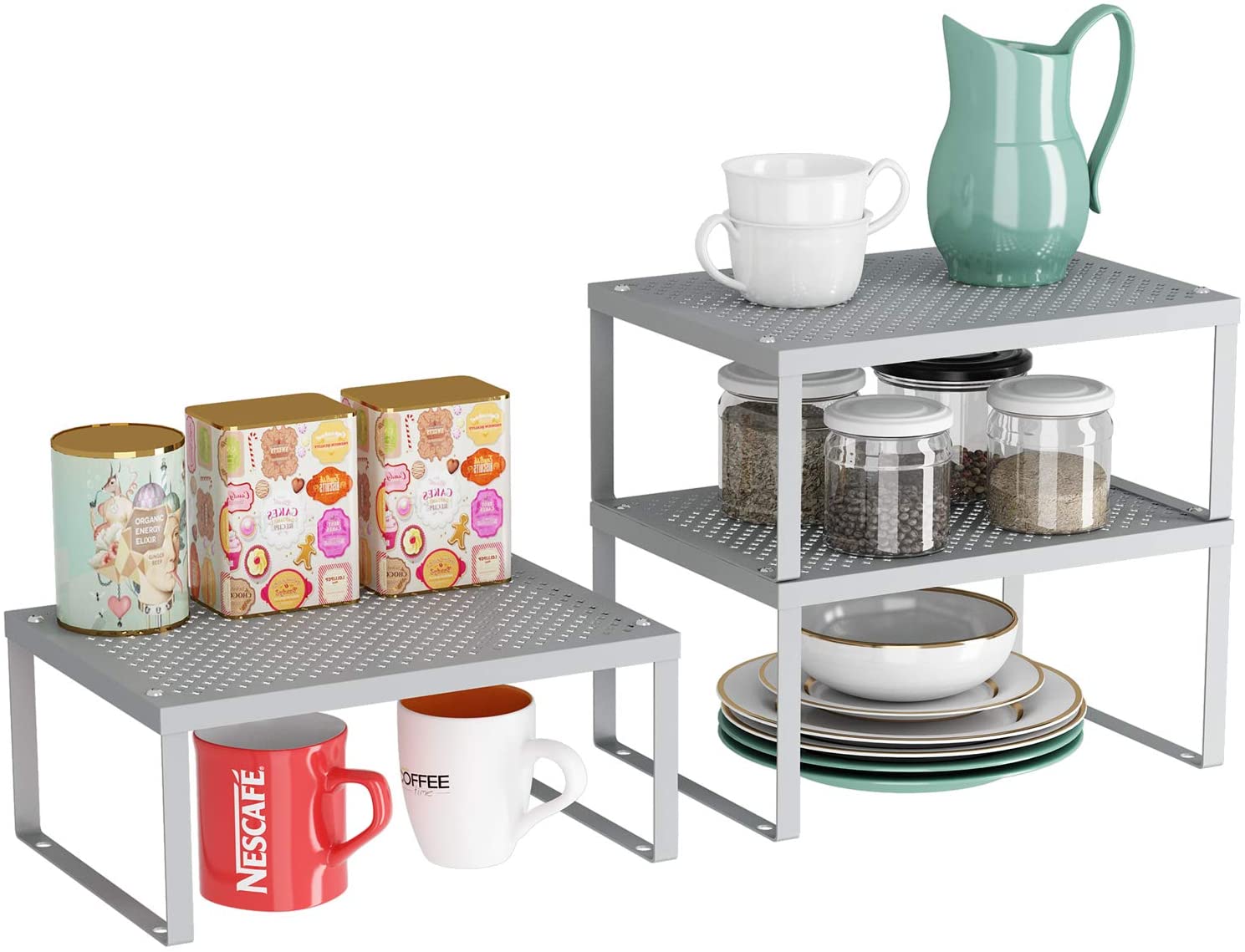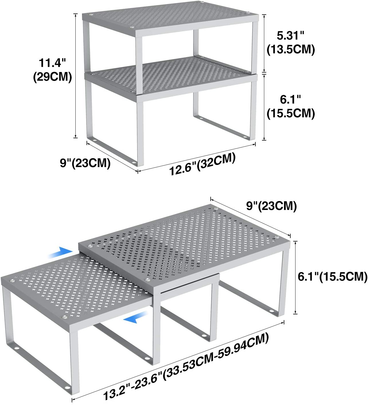 AIYAKA 2-Pack Kitchen Cabinet and Counter Shelf Organizer Expandable Stackable Shelves,Silver