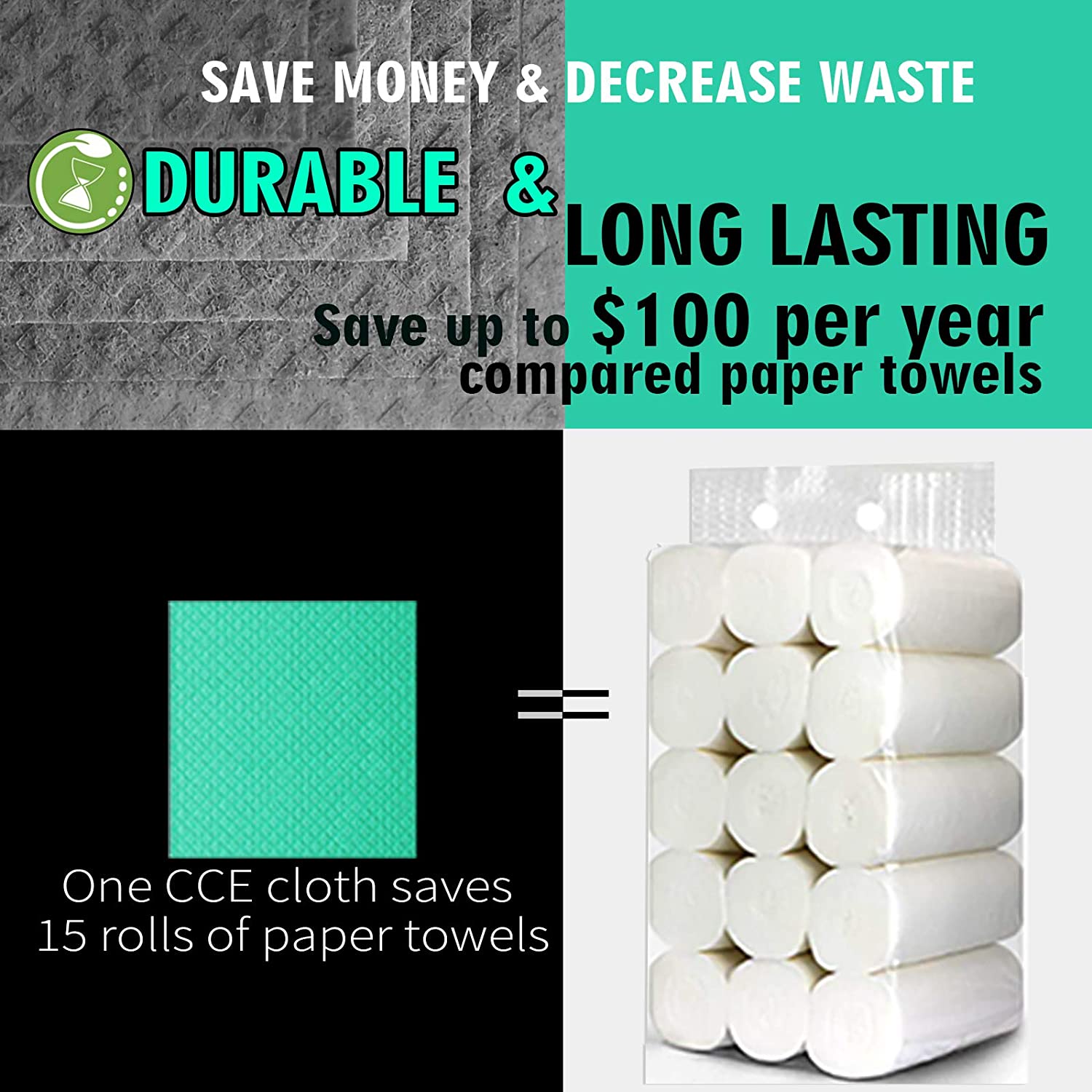 - Reusable - One CCE Cloth saves 15 Rolls of Paper Towels