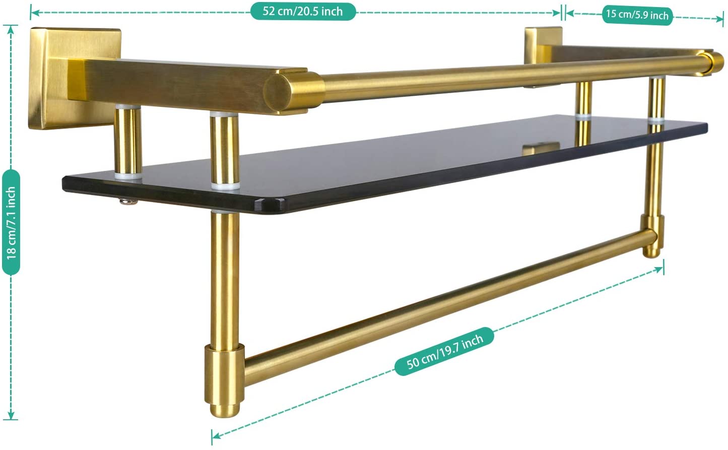 Shower Glass Shelf Dimensions: 19.7 x 5.91 x 6.85 INCHES (LxWxH)