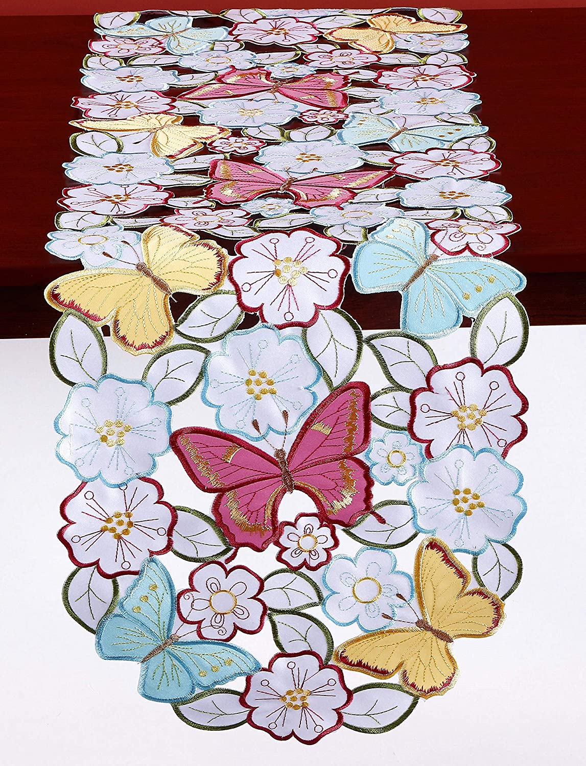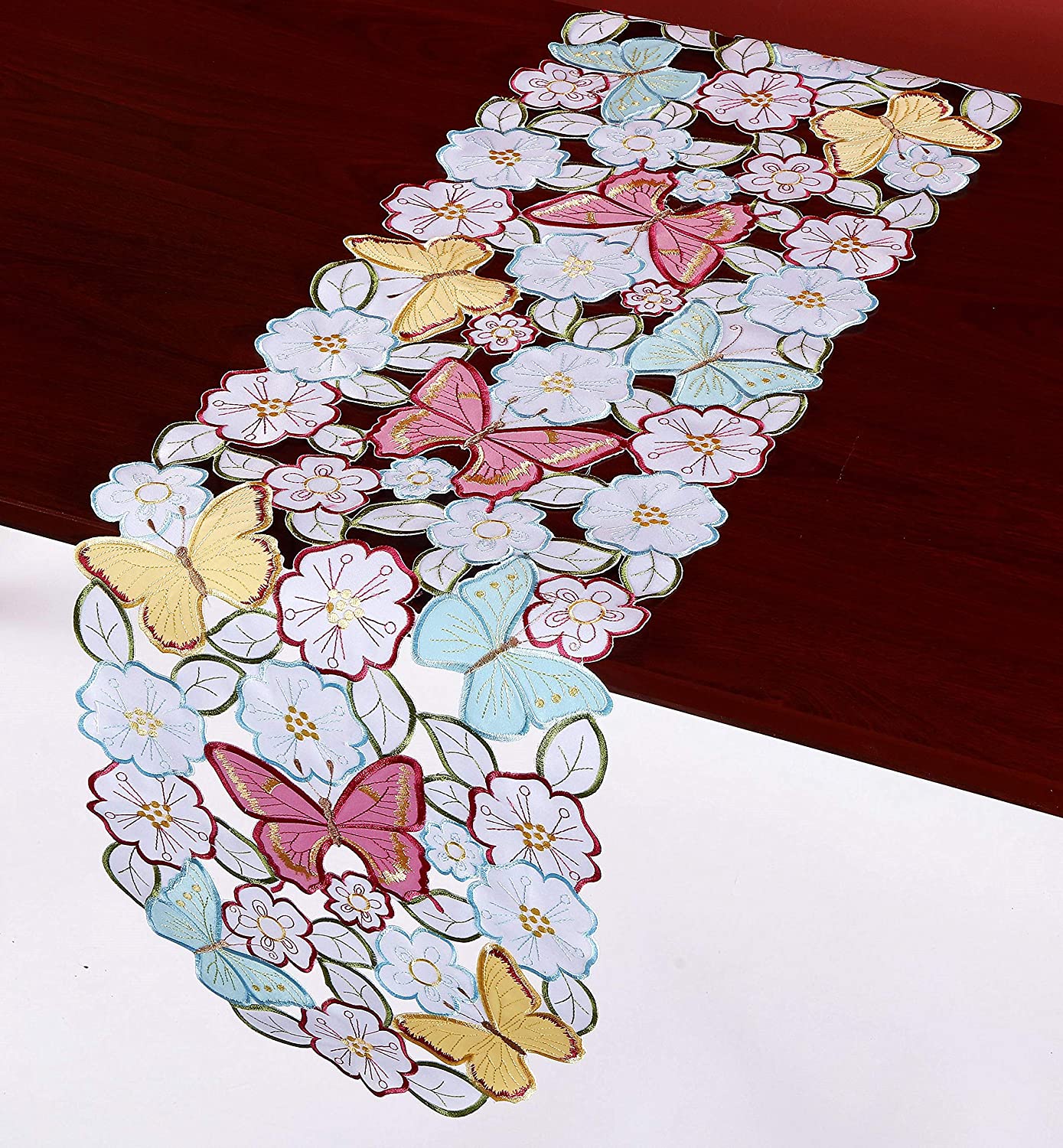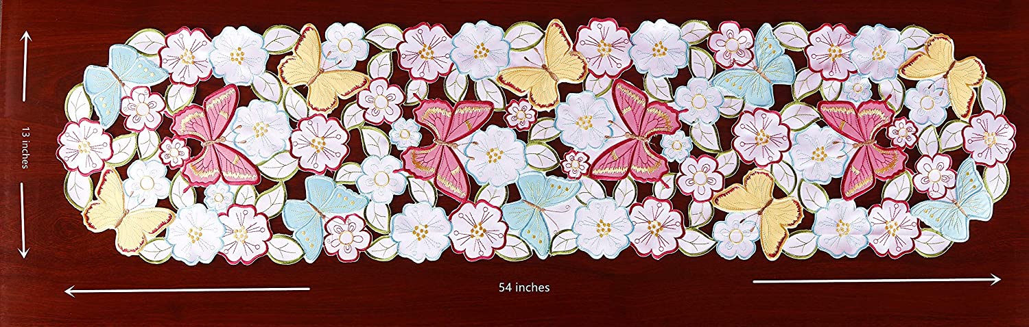 GRANDDECO Embroidered Flowery Table Runner 13"x68", Cutwork Embroidered Floral Butterfly Dresser Scarf, Home Kitchen Dining Tabletop Decoration, Runner 13"x68", Butterfly