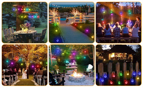 - ❤【Multicolor Solar Hanging Lights as Perfect Gifts】: Outdoor multi-color solar light emits different wonderful color atmosphere, which is a great ideal for indoor and outdoor ornament. Solar-powered lights cracked glass bring a delightful lighting for driveway, walkway, sideway, backyard, wedding, garden, fence, patio, balcony, outdoor decoration party or daily life.