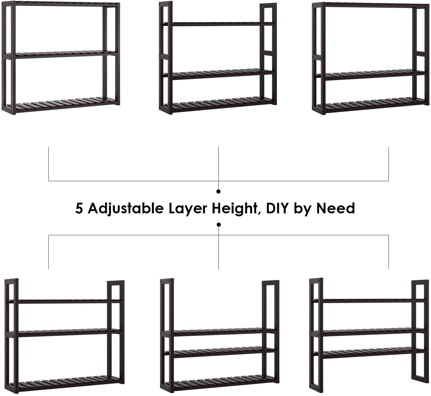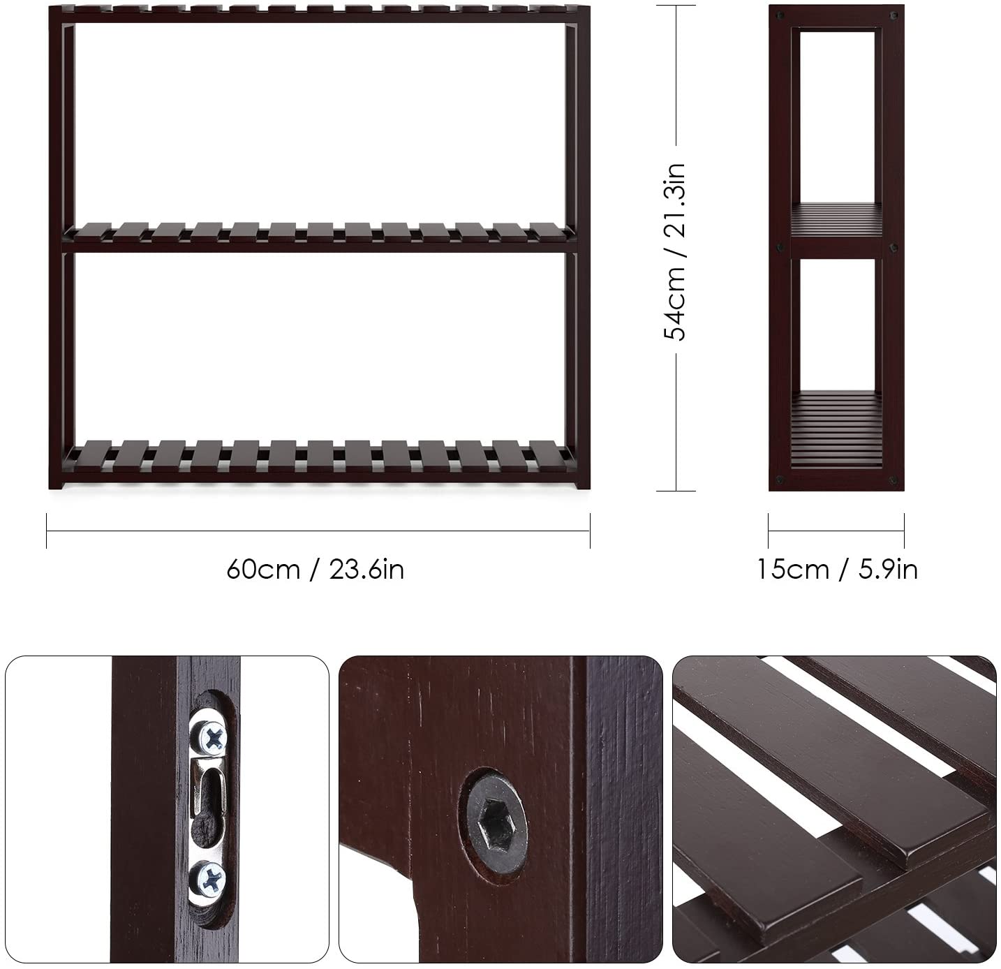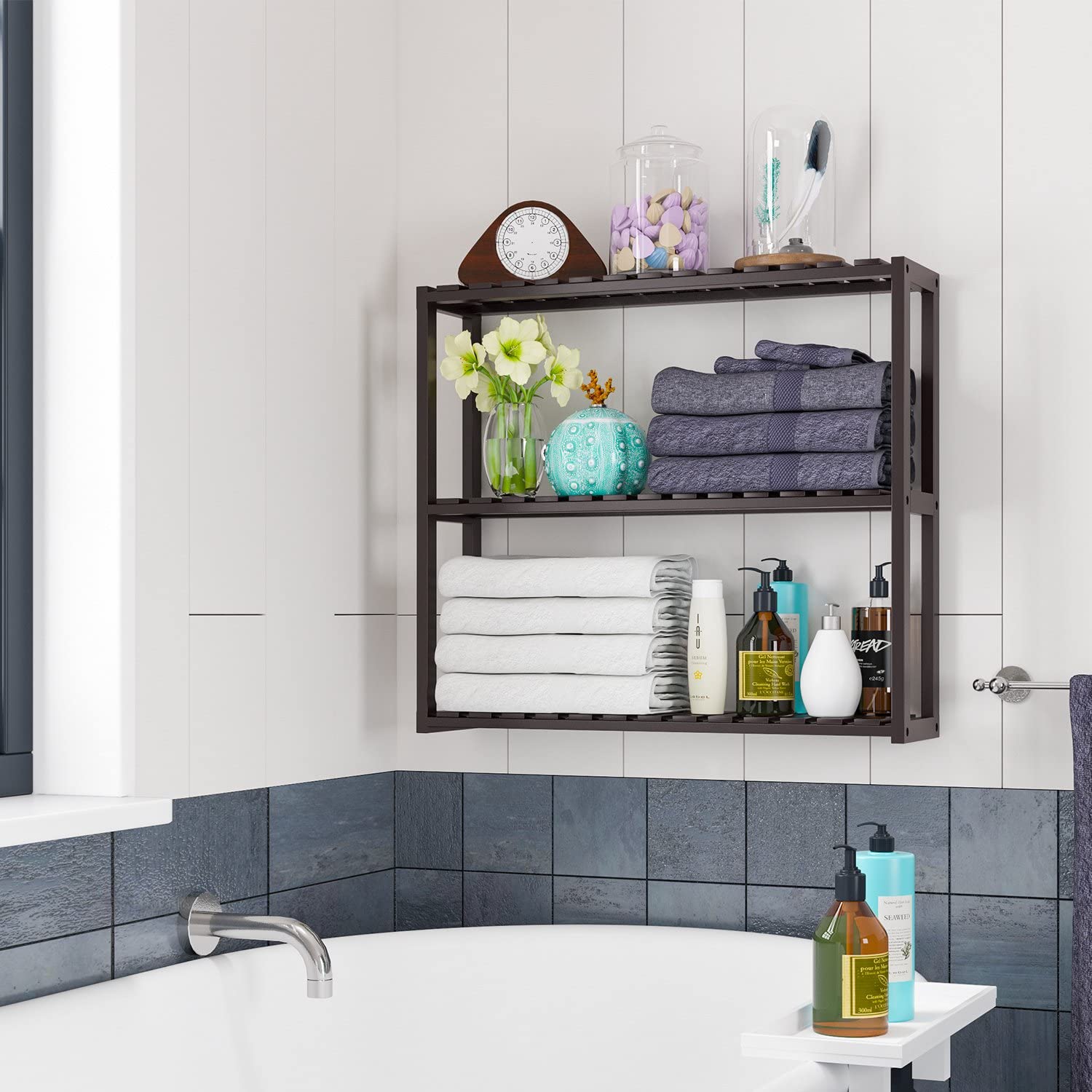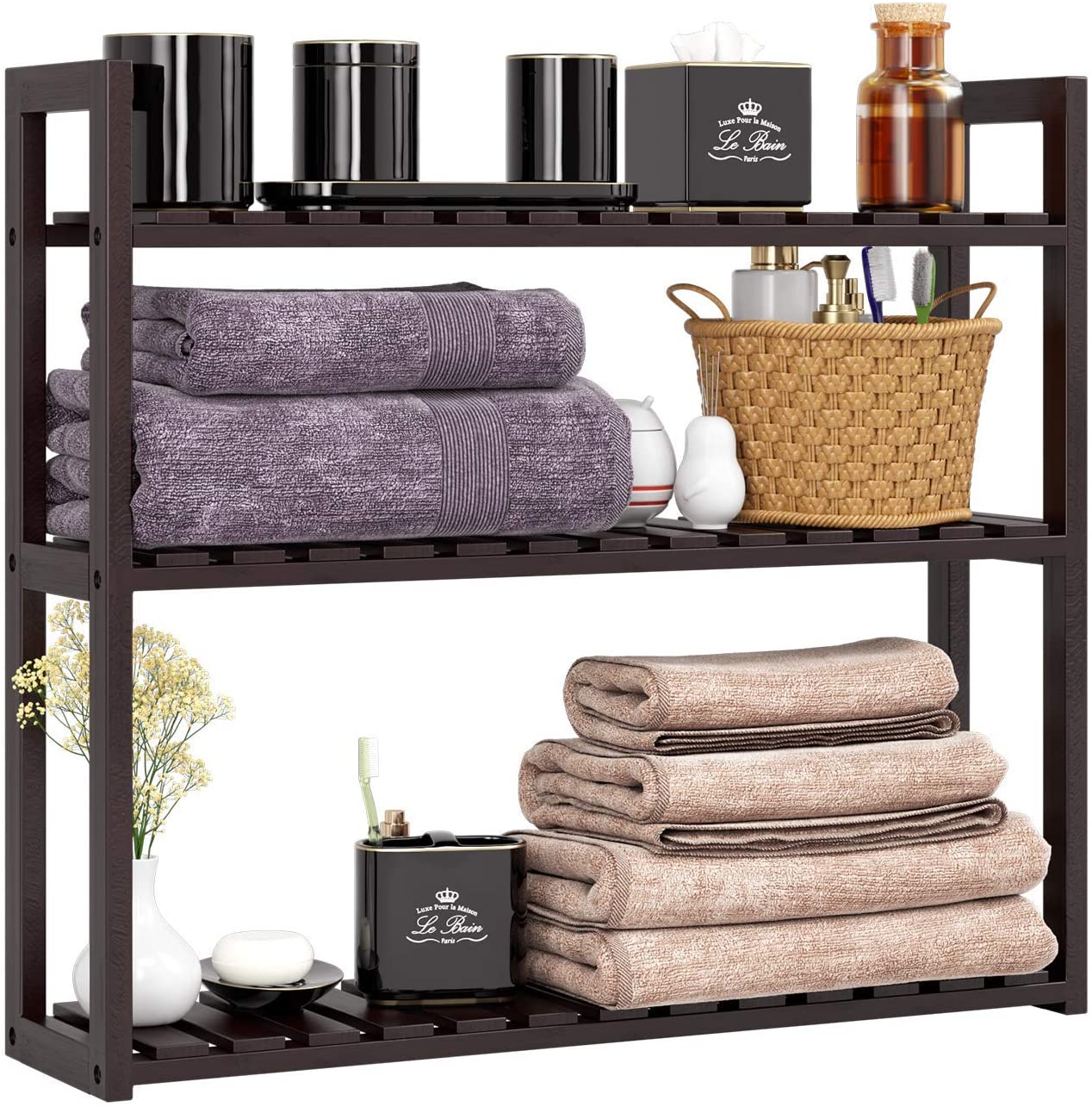 HOMFA Bamboo Bathroom Shelf 3-Tier Multifunctional Adjustable Layer Rack Wall Mounted Utility Storage Organizer Towel Shelves Kitchen Living Room Holder Dark Brown
