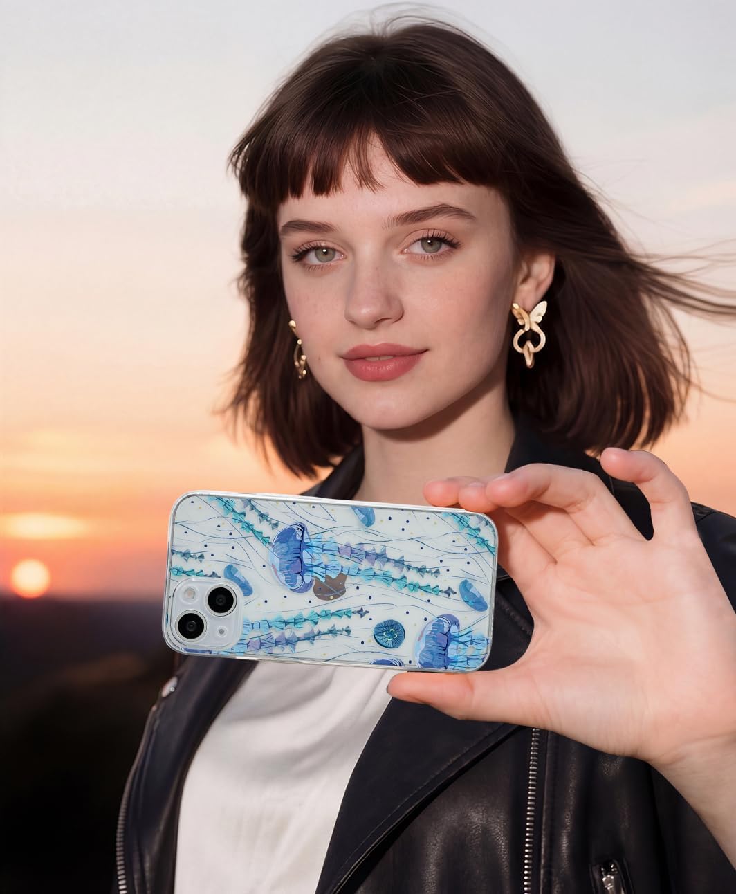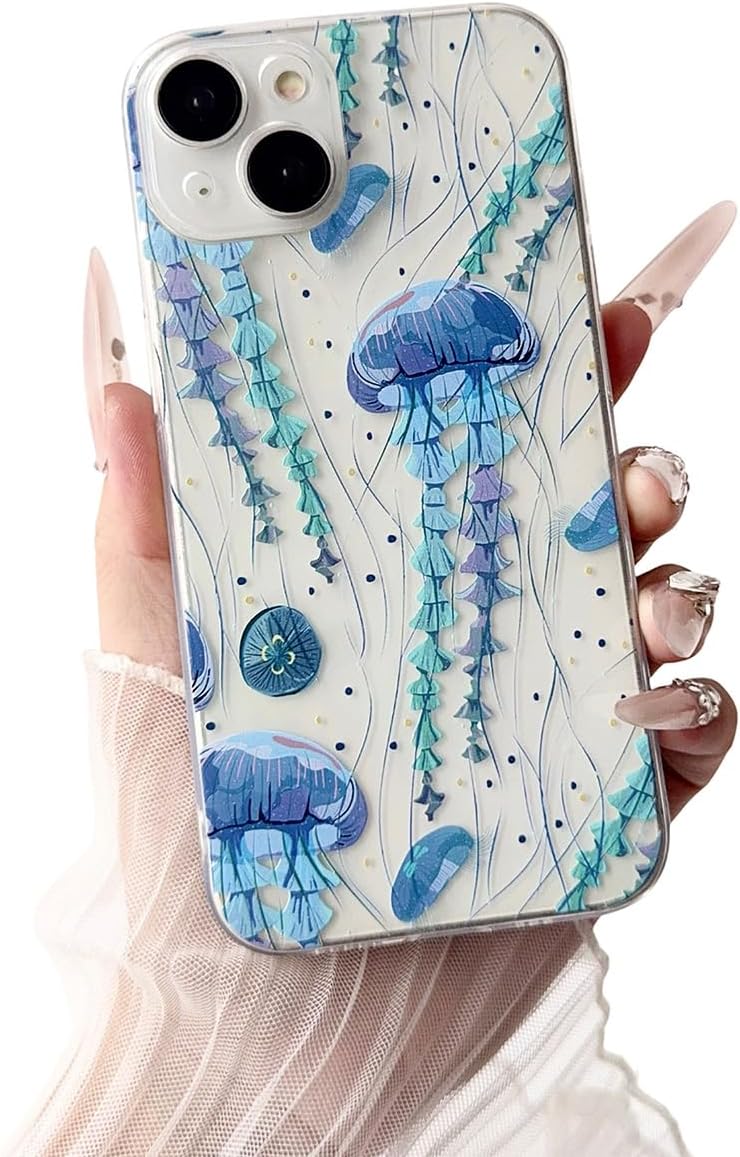 iPhone 15 Case: Ocean Jellyfish Clear Soft TPU Phone Case [Model Compatibility] Exclusively tailored for iPhone 15 — precise cutouts align perfectly with buttons, charging ports, camera lens, and speakers, ensuring unobstructed access to all device functions. Why Choose Our Jellyfish Case for iPhone 15? Fresh Ocean-Themed Design Blue-and-white jellyfish pattern with delicate line textures, printed on a transparent TPU base. The marine-style graphic brings a calm, whimsical aesthetic that complements the iPhone 15’s sleek silhouette. A personalized decorative accessory ideal for daily use or matching summer/ocean-themed styling. Tailored Protection for 6.7-inch Screen Crafted from high-quality soft TPU: shock-absorbent to buffer drops, scratch-resistant against daily scuffs, and flexible (easy to install/remove without damaging your device). 1.2mm raised edges around the camera lens and 6.7-inch screen shield against impacts, scratches, and dust accumulation. Practical & Durable UV-resistant clear back resists yellowing over time, maintaining the case’s transparent, fresh appearance. Slim, lightweight profile preserves the iPhone 15’s original form factor — fully compatible with wireless charging and most phone grips/stands. Package Included: 1 x Ocean Jellyfish Clear Phone Case for iPhone 15 Note: Color may vary slightly due to lighting conditions.