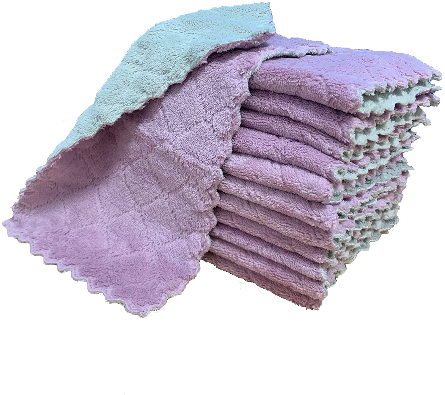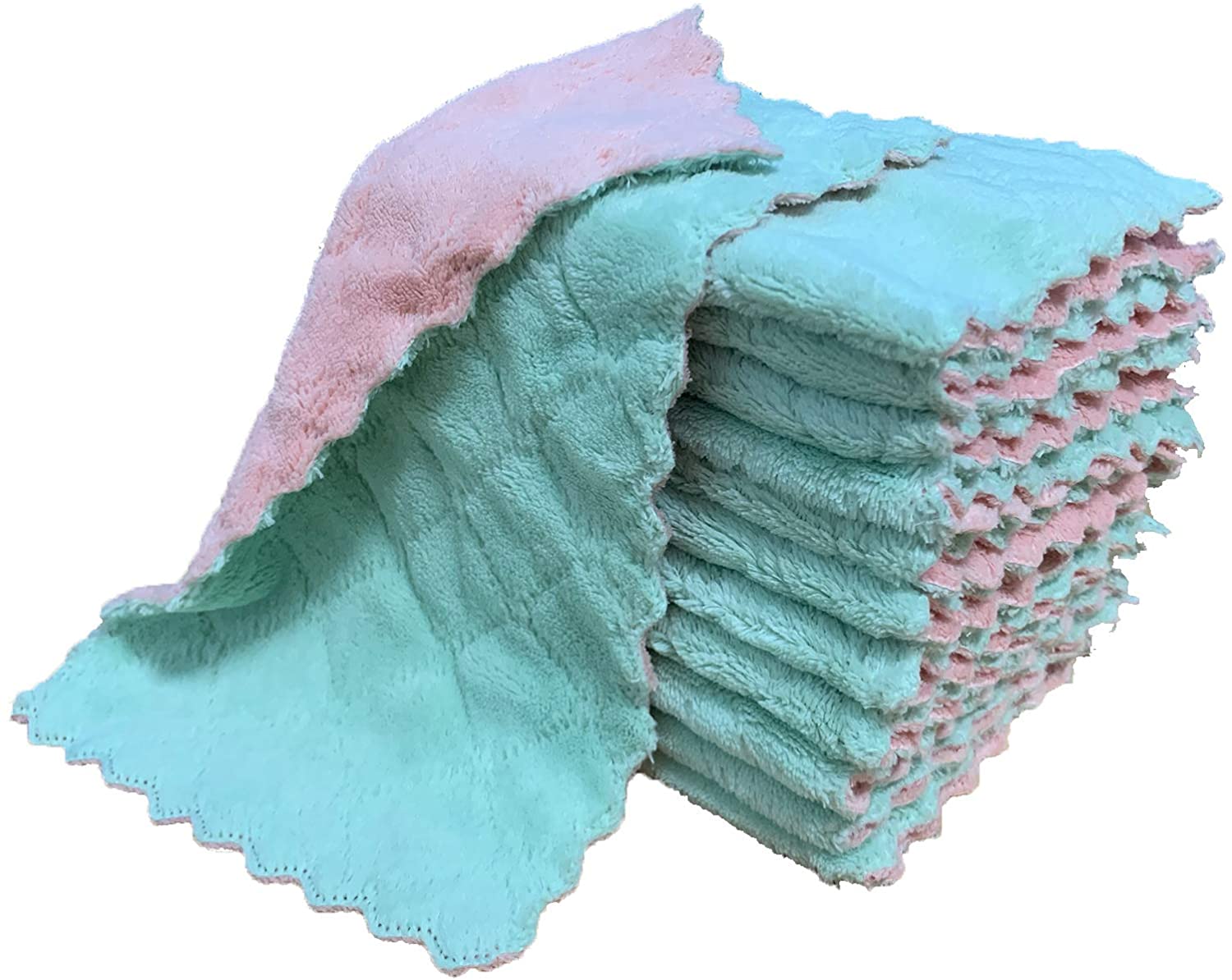 kimteny 12 Pack Kitchen Cloth Dish Towels, Premium Dishcloths, Super Absorbent Coral Velvet Dishtowels, Nonstick Oil Washable Fast Drying (Green-Grey)