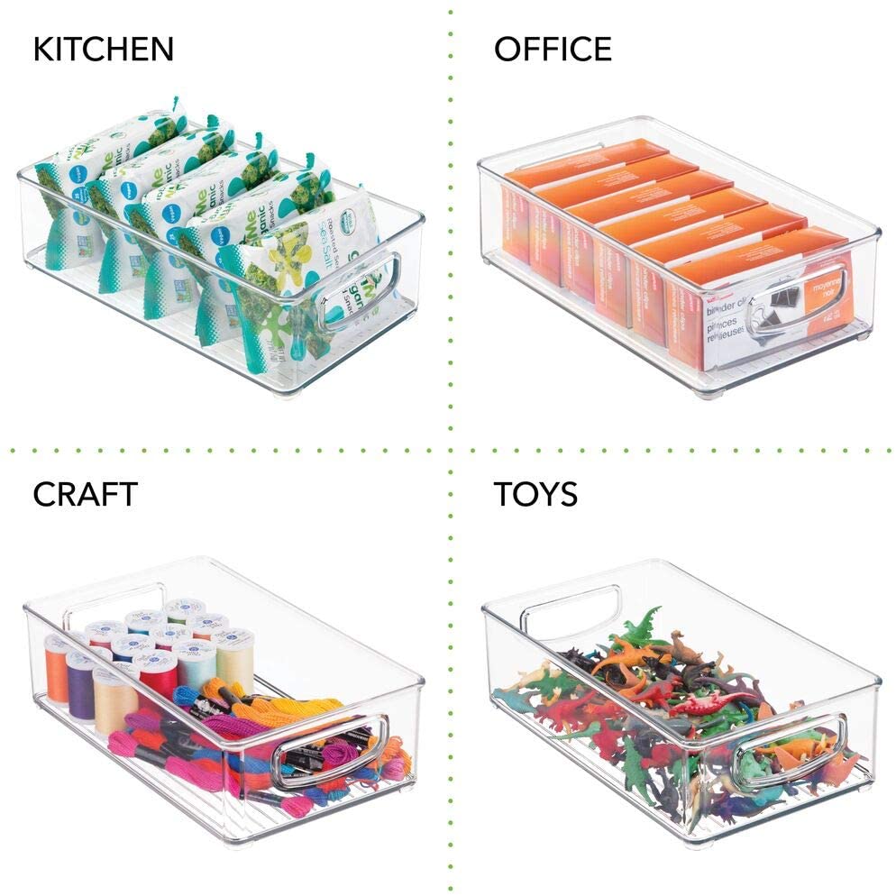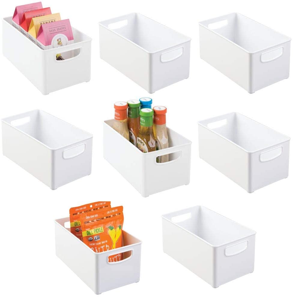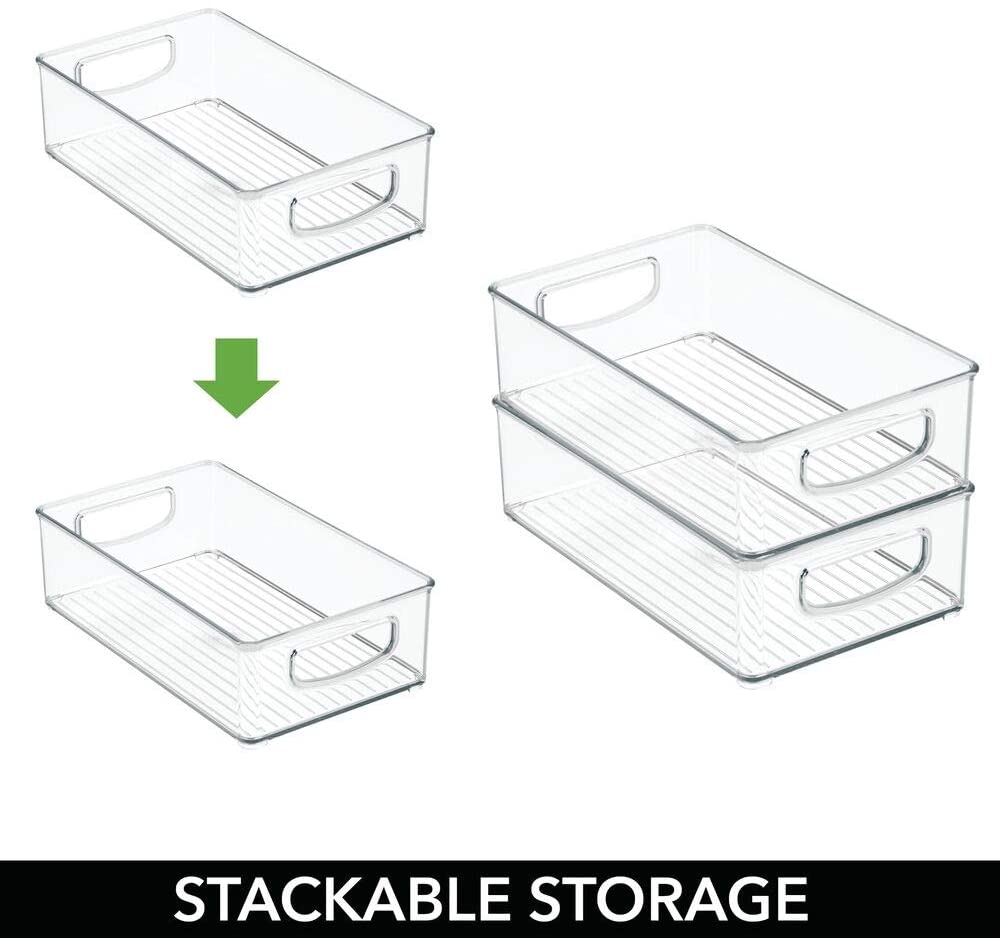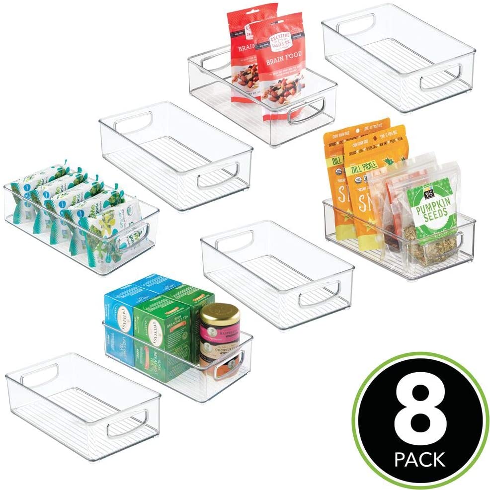 mDesign Plastic Kitchen Pantry Cabinet, Refrigerator or Freezer Food Storage Bins with Handles - Organizer for Fruit, Yogurt, Snacks, Pasta - Food Safe, BPA Free, 6" Wide, 8 Pack - Clear