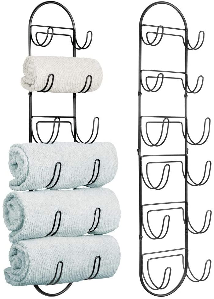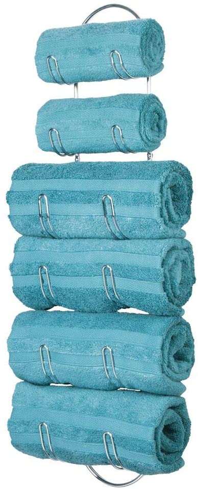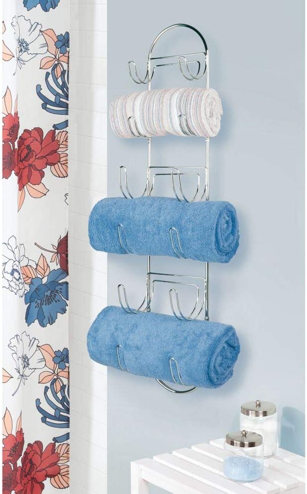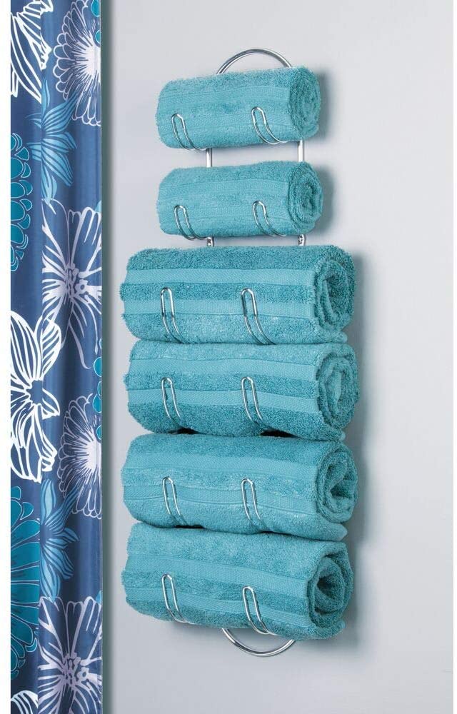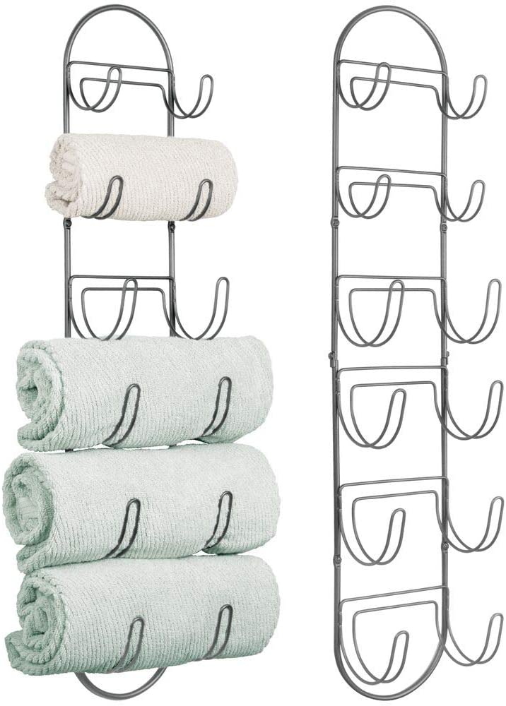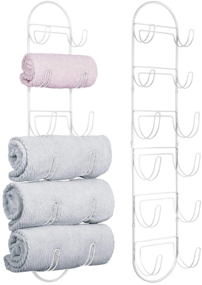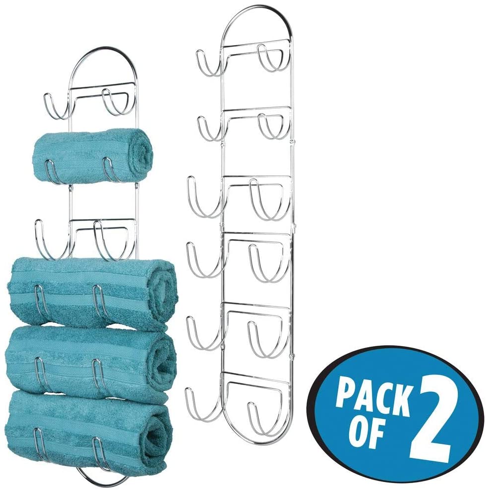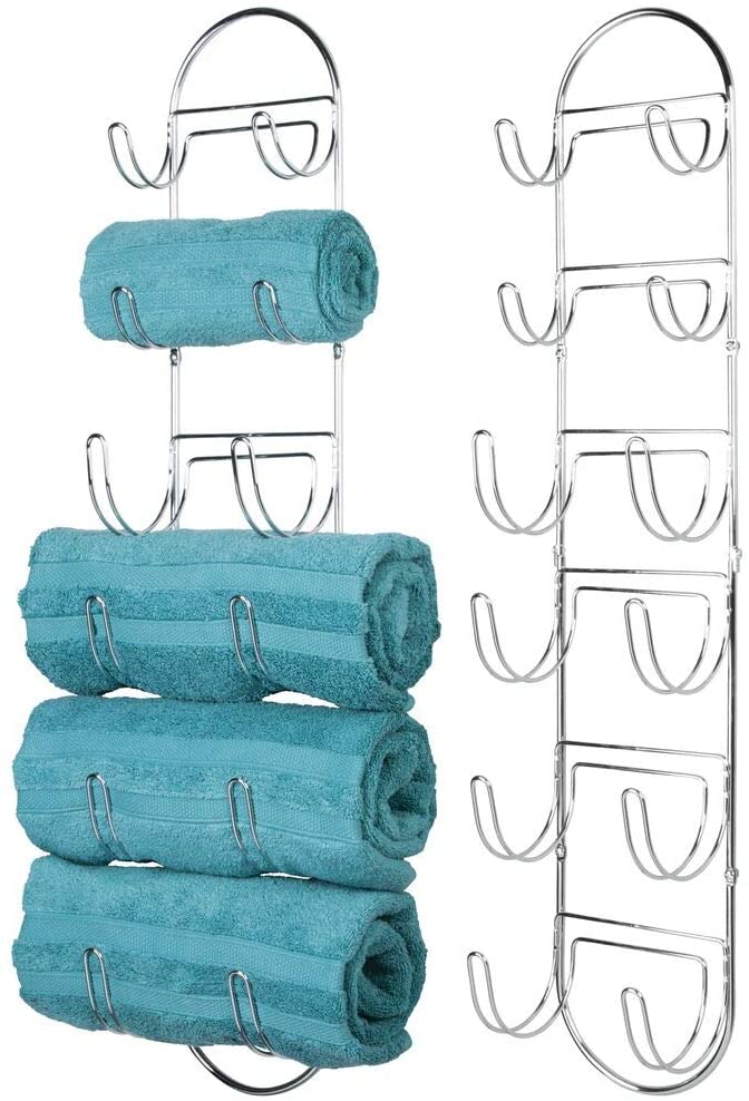 mDesign Wall Mount Metal Wire Towel Storage Shelf Organizer Rack Holder with 6 Compartments, Shelves for Bathroom Towels - 2 Pack - Chrome