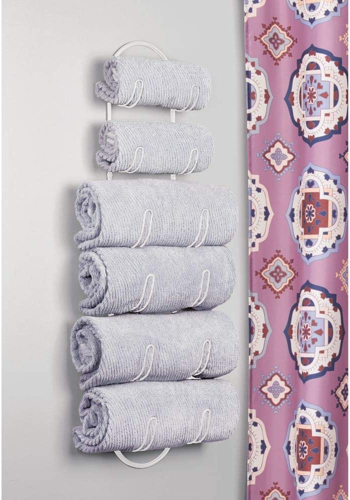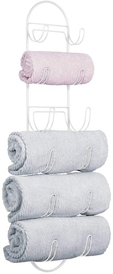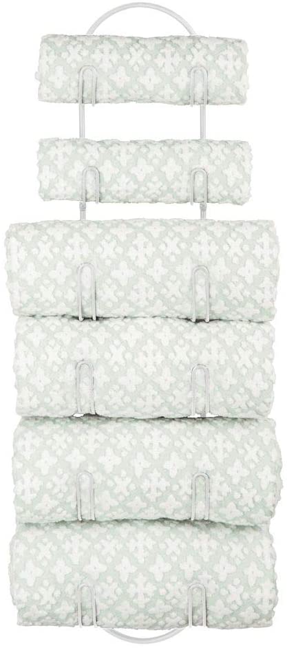 mDesign Wall Mount Metal Wire Towel Storage Shelf Organizer Rack Holder with 6 Compartments, Shelves for Bathroom Towels - White