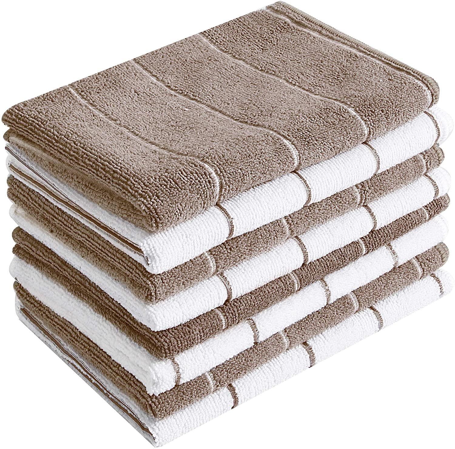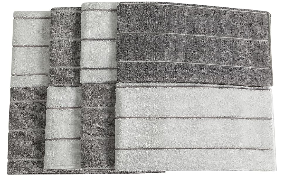 Our goal is to improving the quality of kitchen towels for the purpose of increasing the experience of customer. The Hyer Kitchen microfiber towels are about 350gsm in weight. Our dish towels for kitchen sets measure 26 x 18",which for drying dishes can be safely reused to reduce waste, and have better water absorption when you use them.