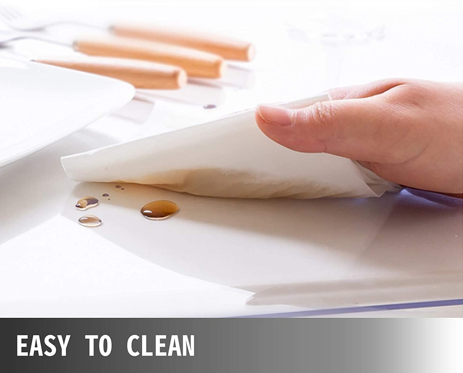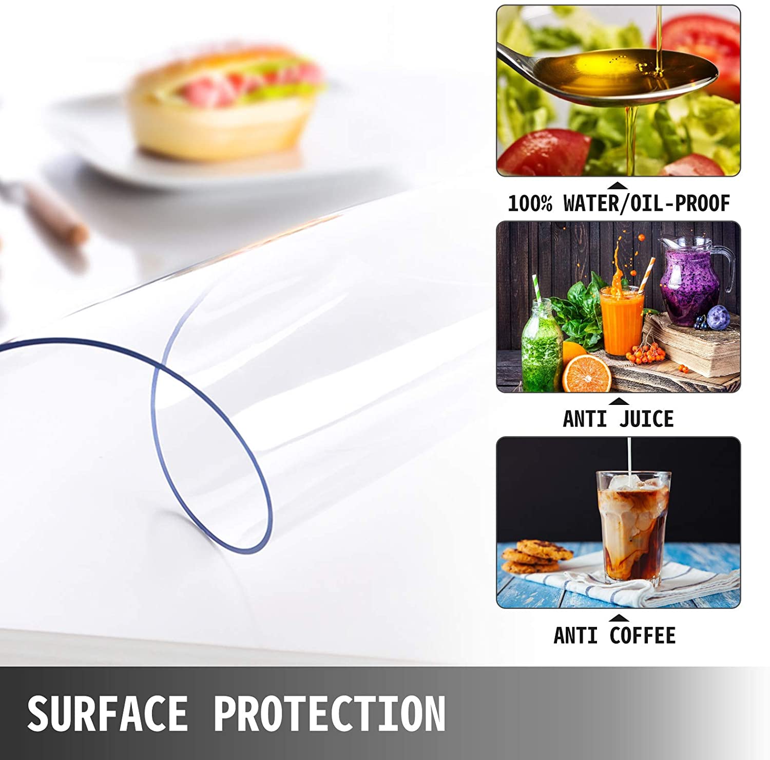 High-quality clear table cover that can protect your tabletop surface. Widely used for dining table, wooden table, glass, marble, writing desktops, coffee & end table, TV bench, hard floor, etc.