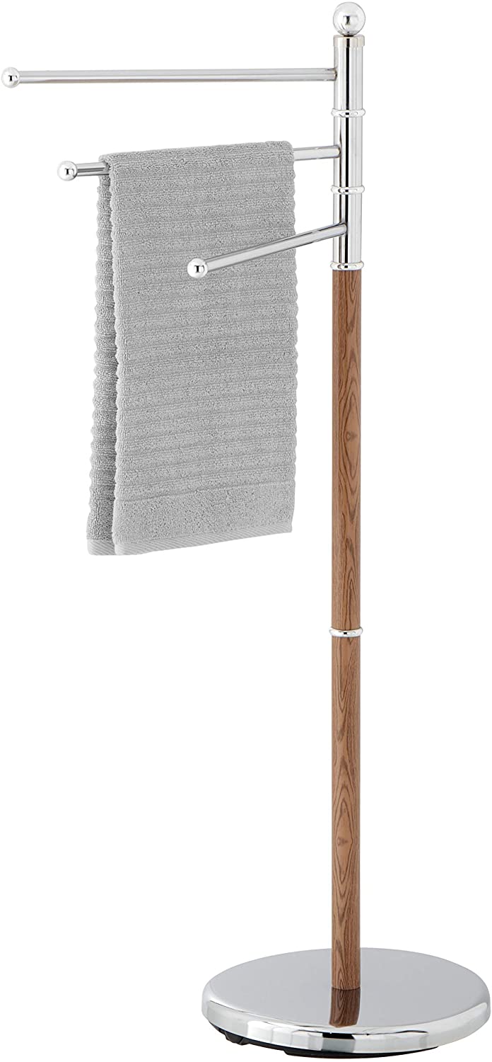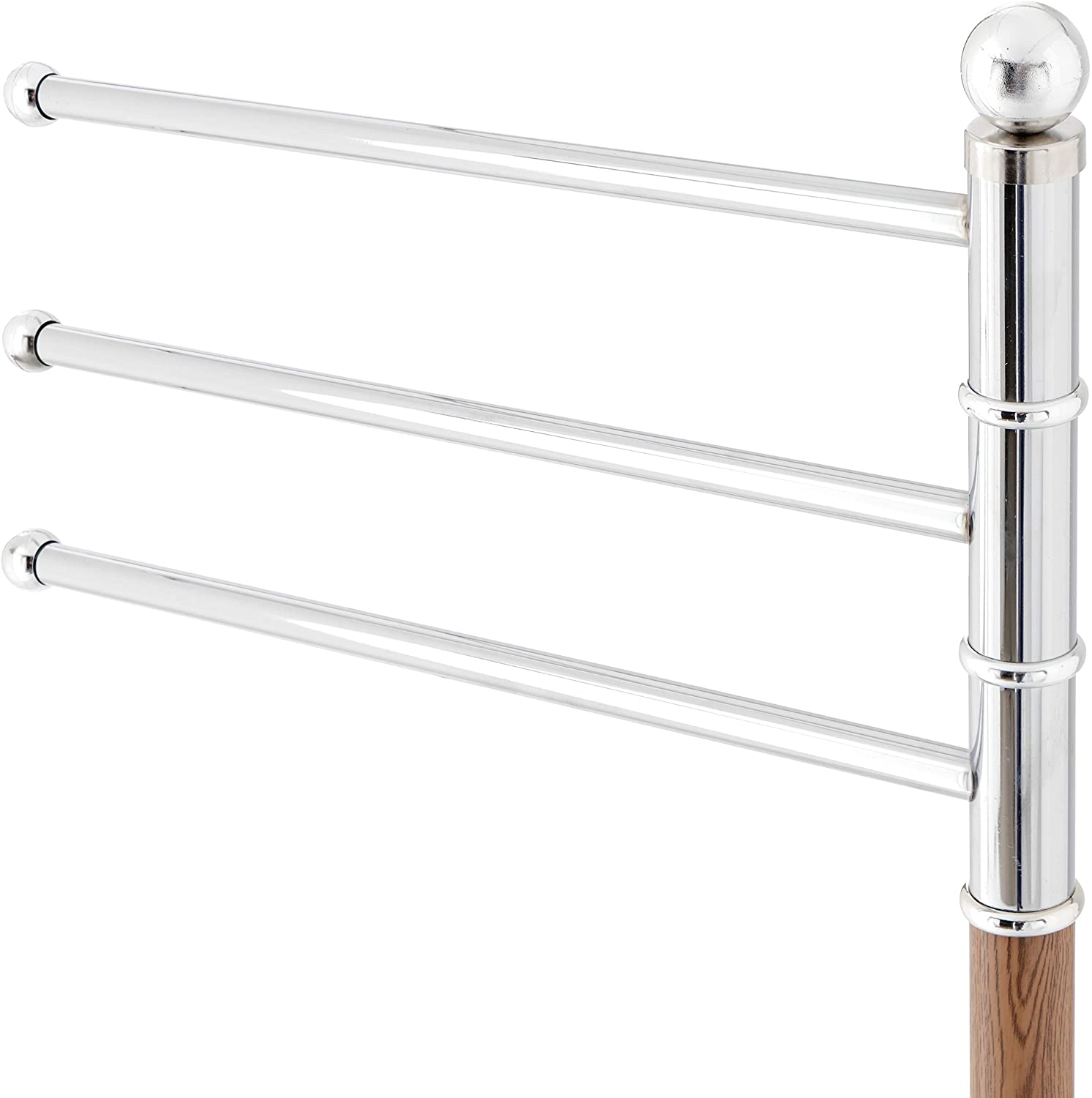 MyGift 40-Inch Freestanding Metal 3-Swivel Arm Bathroom Towel Holder Storage Rack with Wood Grain Design