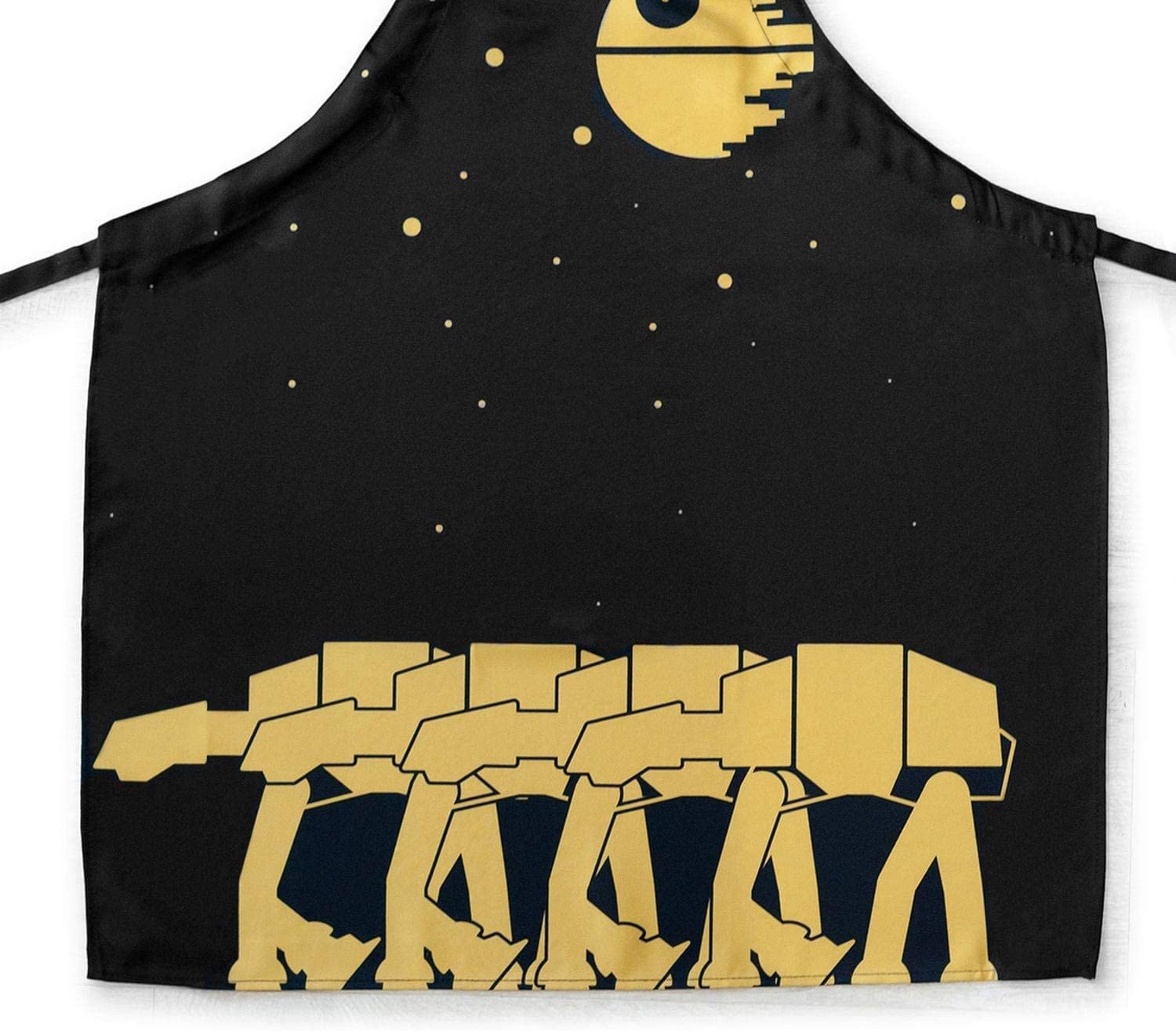 Star Wars is deep-rooted in American pop-culture. There is hardly a person in the world who wouldn’t recognize the iconic logo. Now you can own a piece of American pop-culture AND become the life of your party with this one-of-a-kind kitchen apron! Featuring marching AT-AT walkers, this apron is the best way to flaunt your Star Wars super fandom! This apron makes a wonderful gift for all Star Wars fans and especially those with an affinity for the Empire!