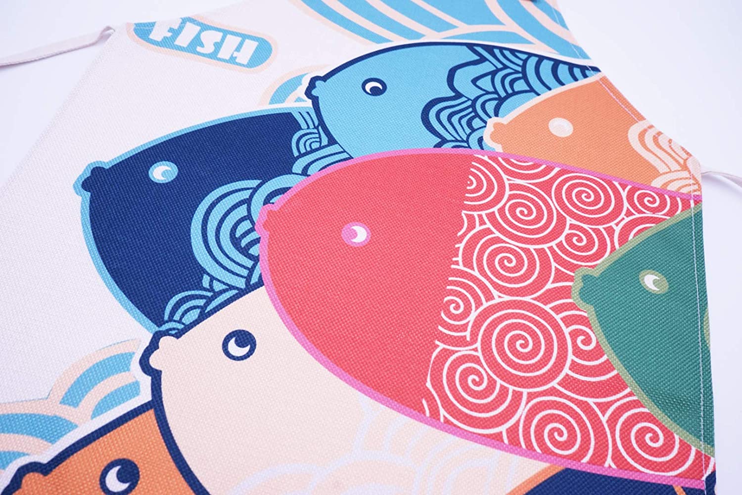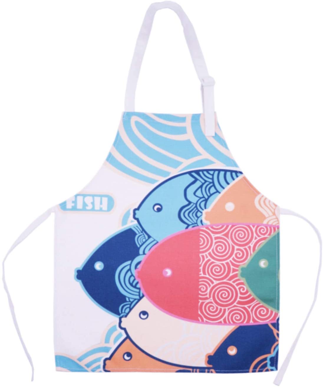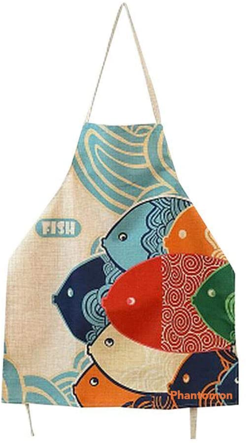Phantomon Aprons for Women Cotton Apron Cartoon Japanese Style Lovely Fish Print Chef Kitchen Cooking Funny Aprons (kids)