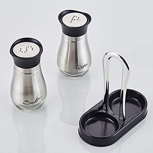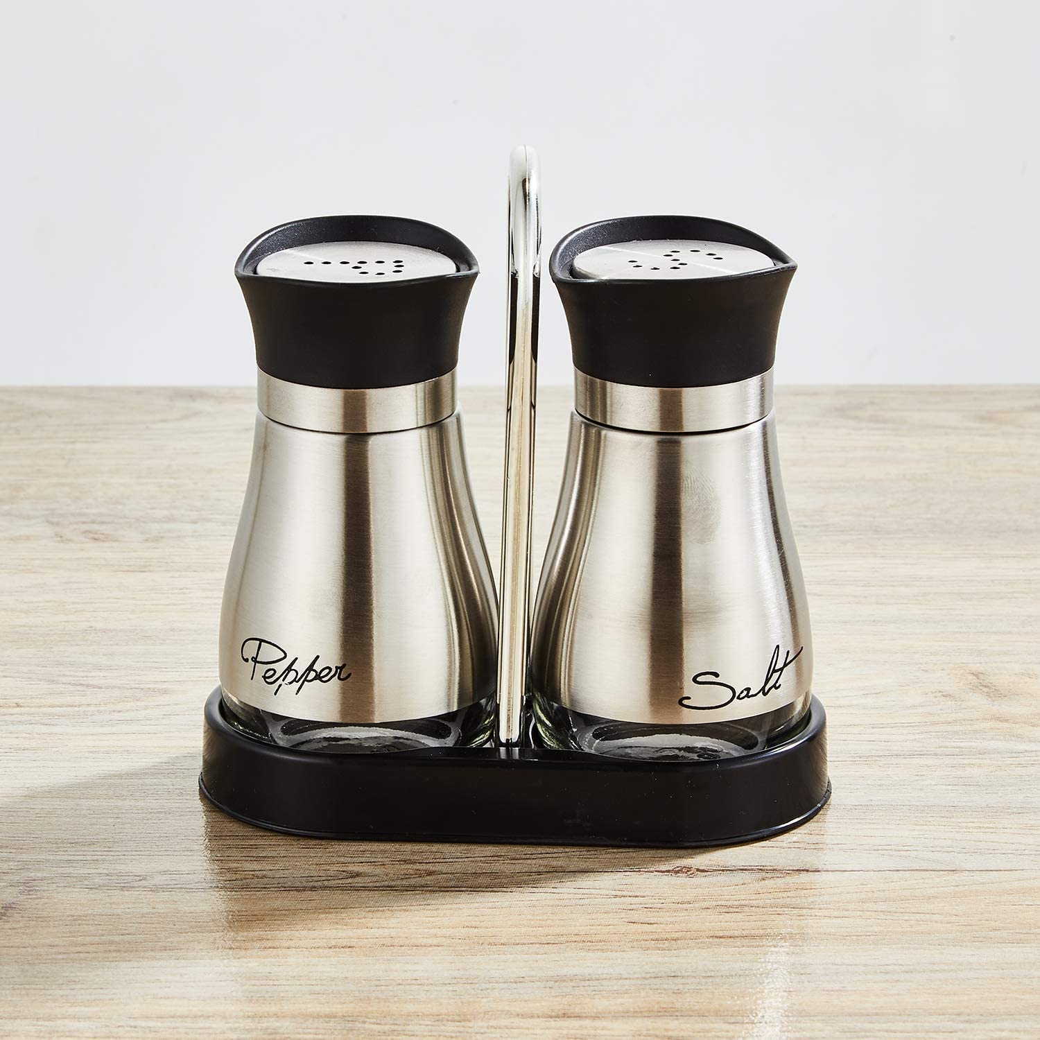 Salt and Pepper Shakers, Stainless Steel with Glass Bottle, Set of 2