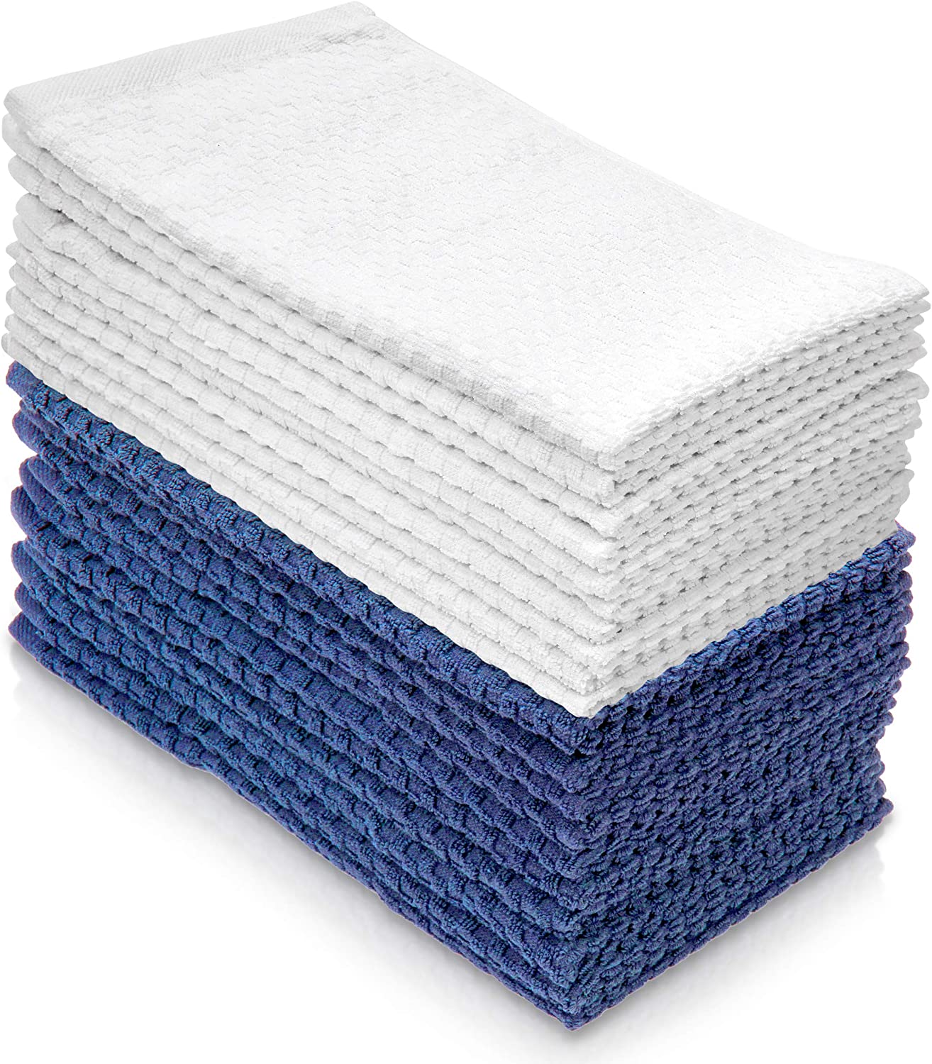 Simpli-Magic Kitchen Dish Towels, European Popcorn Design, 10 Pack, Size: 16"" x 27""", White / Blue (79332)