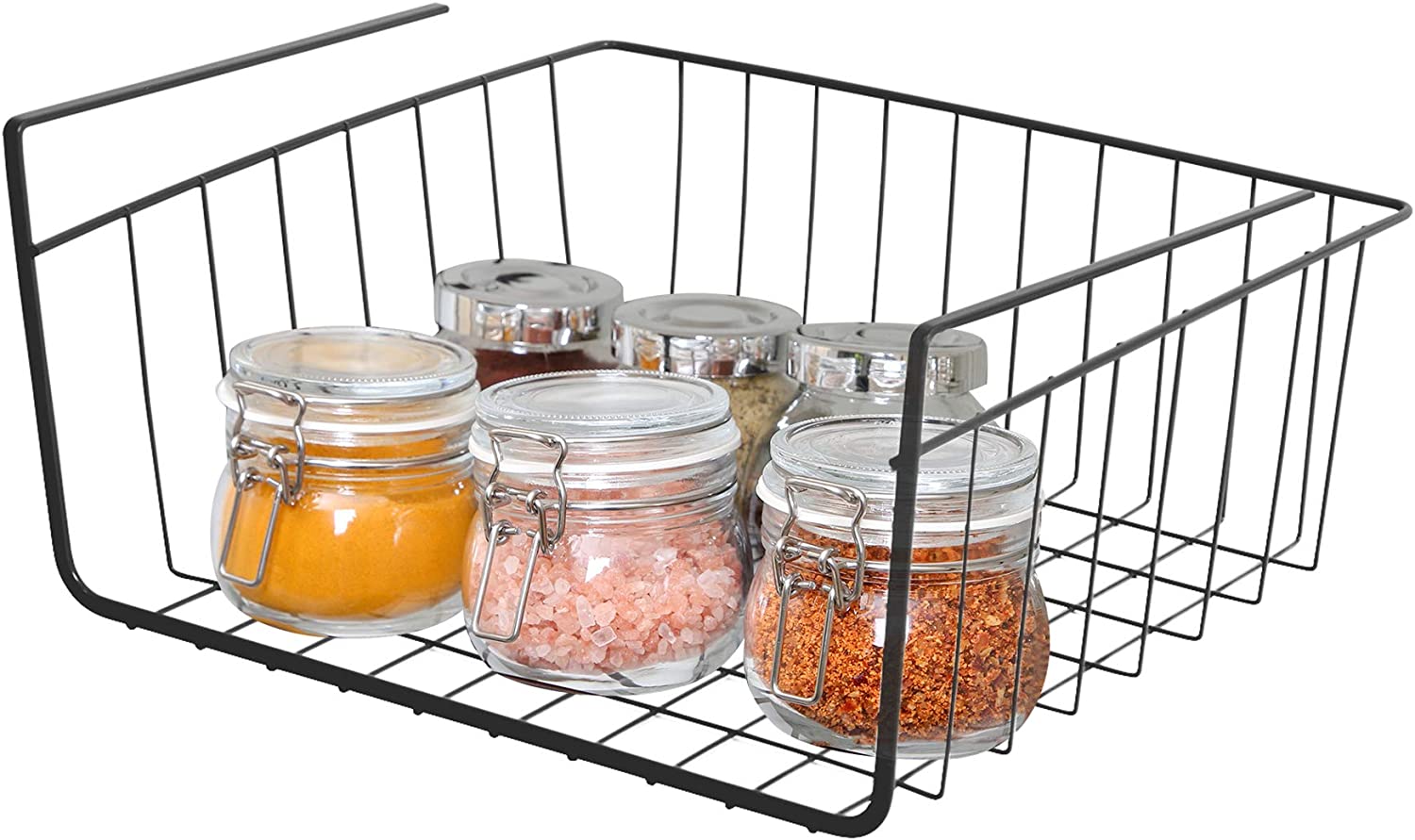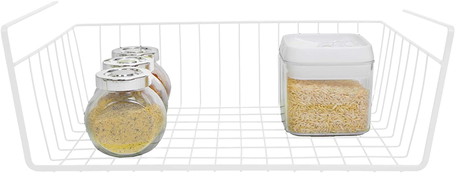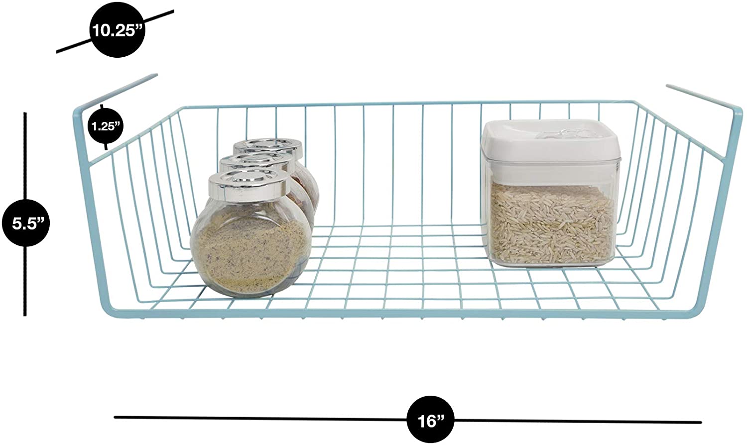 Smart Design Undershelf Storage Basket - Snug Fit Arms - Steel Metal Frame - Rust Resistant Finish - Cabinet, Pantry, & Shelf Organization - Kitchen (Medium, Light Blue)