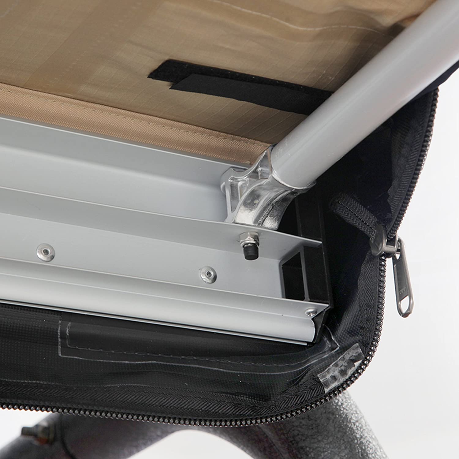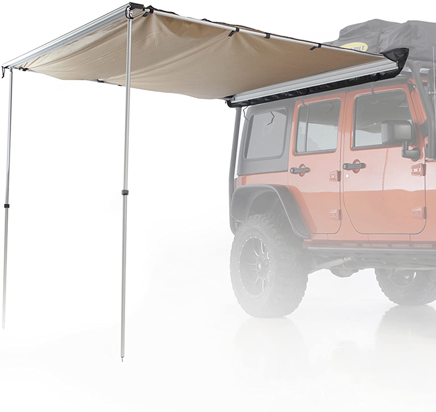 Either by itself, or in combination with the Smittybilt Overlander Roof Top Tent, the Smittybilt Overlander rack-mountable Tent Awning gives the perfect amount of shade needed to relax on a hot afternoon, while being equally good at providing quick cover on rainy days. Made from a durable Polyurethane-Impregnated 600D Oxford Polyester, this awning is built to last. The awning uses telescoping steel poles that quickly extend and collapse to provide quick and simple setup and tear-down. The awning is fully self contained in a heavy duty 500D PVC cover that mounts to the rack using strudy UV-resistant straps and buckles. When youre looking for the ultimate in convenience, look no further than the Smittybilt Overlander Tent Awning!