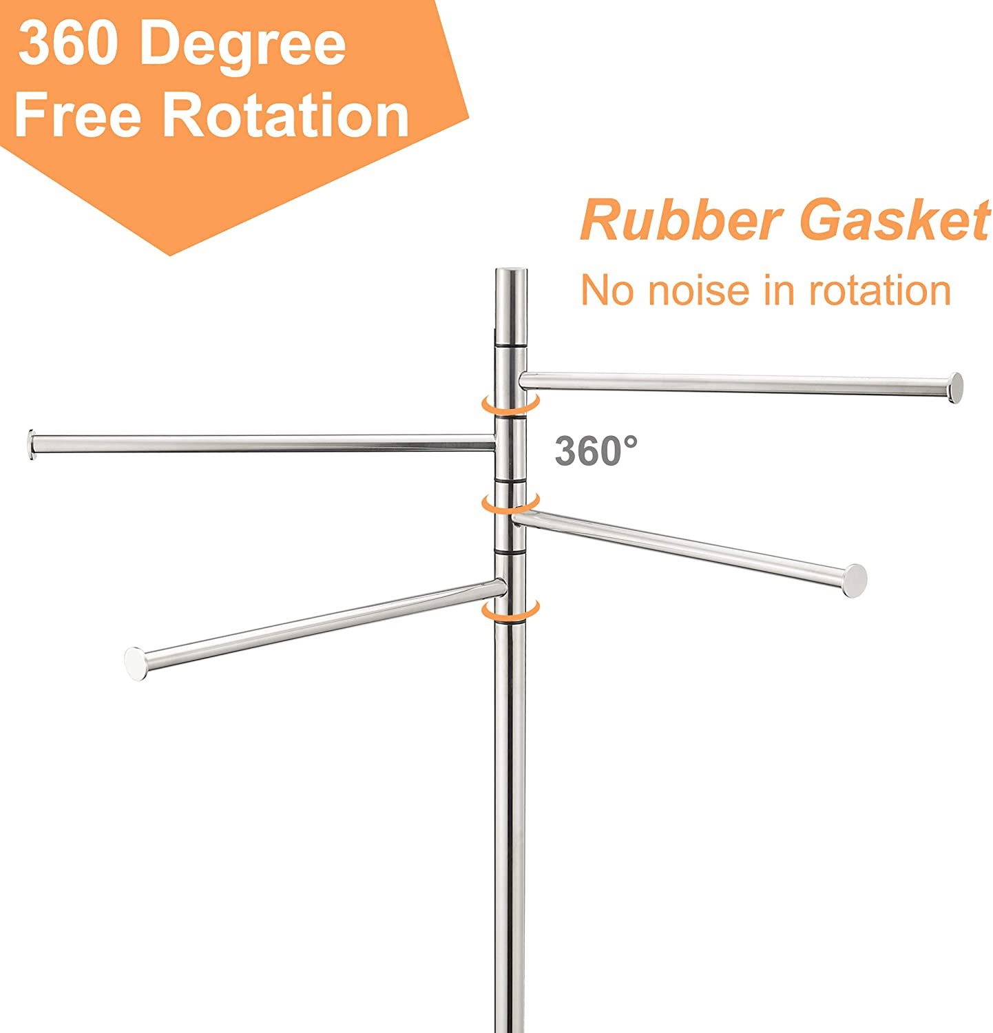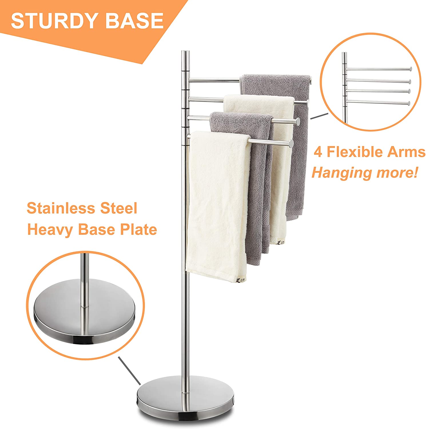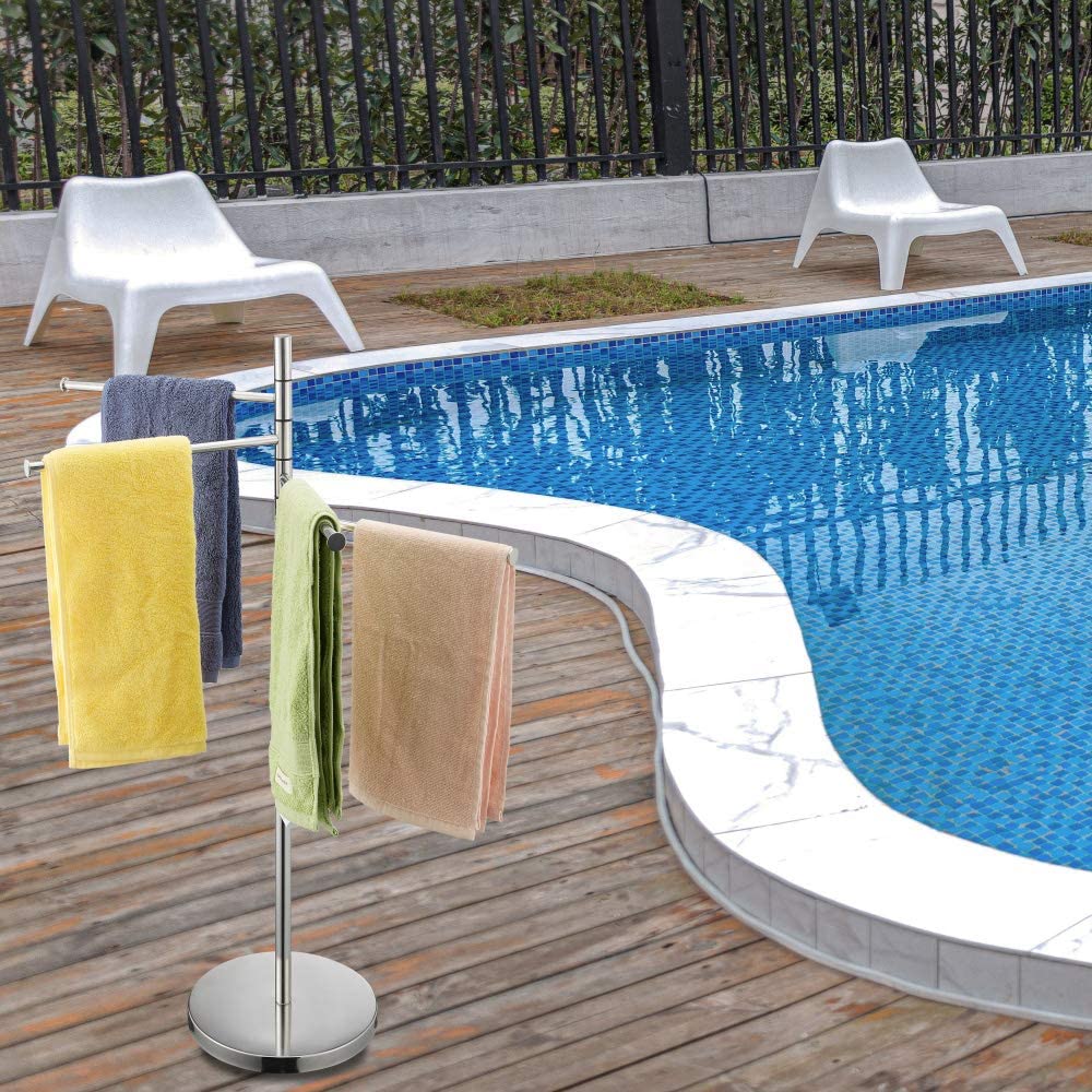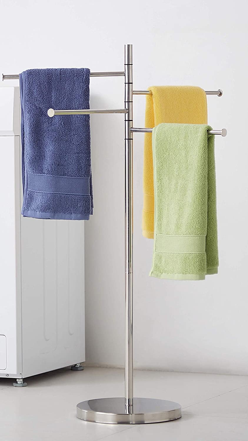 Standing Towel Rack, Modern Stainless Steel 4 Swivel Arm Towel Holder Rack with Round Base, Freestanding Hand Towel Bar Stand, DECLUTTR