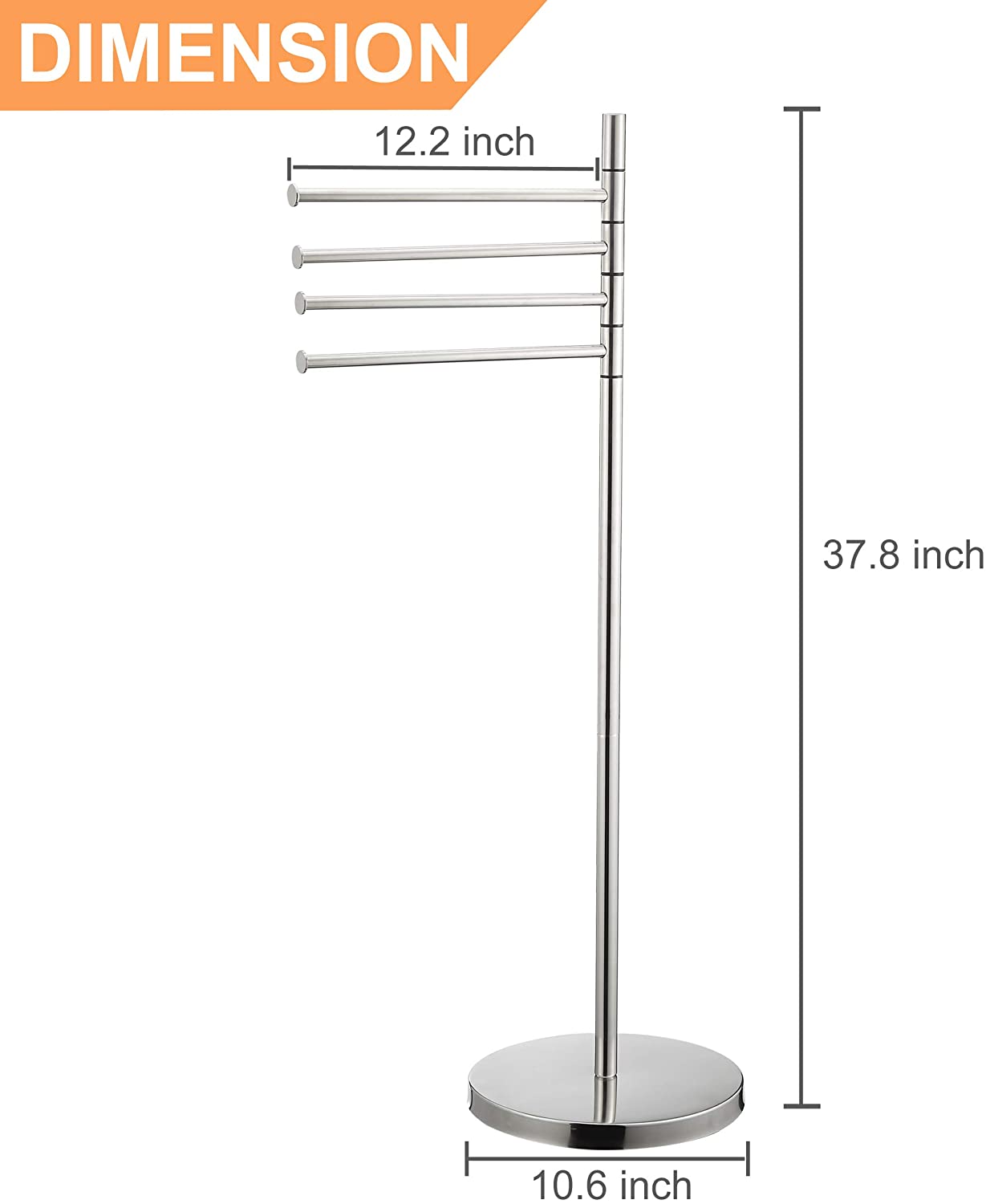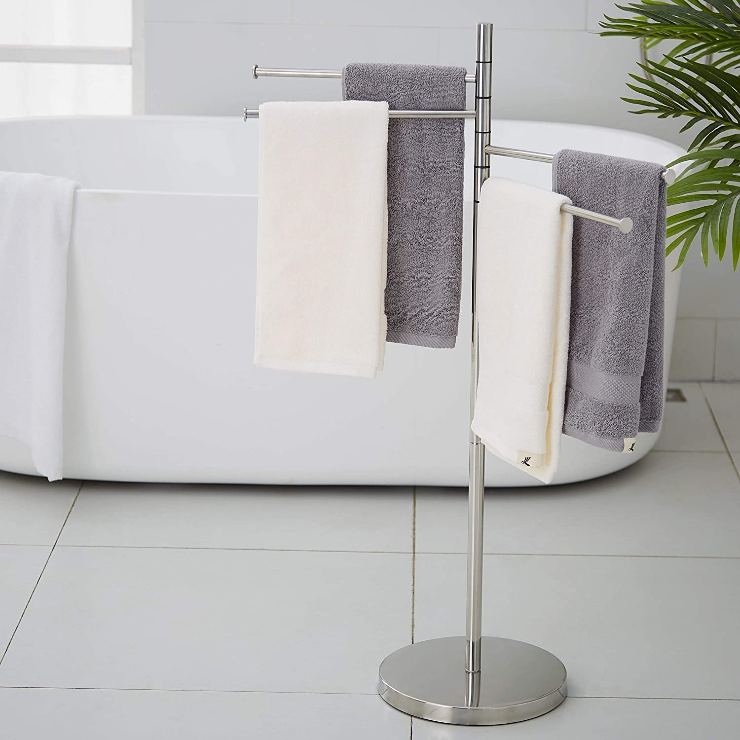 Standing Towel Rack, Modern Stainless Steel 4 Swivel Arm Towel Holder Rack with Round Base, Freestanding Hand Towel Bar Stand, DECLUTTR
