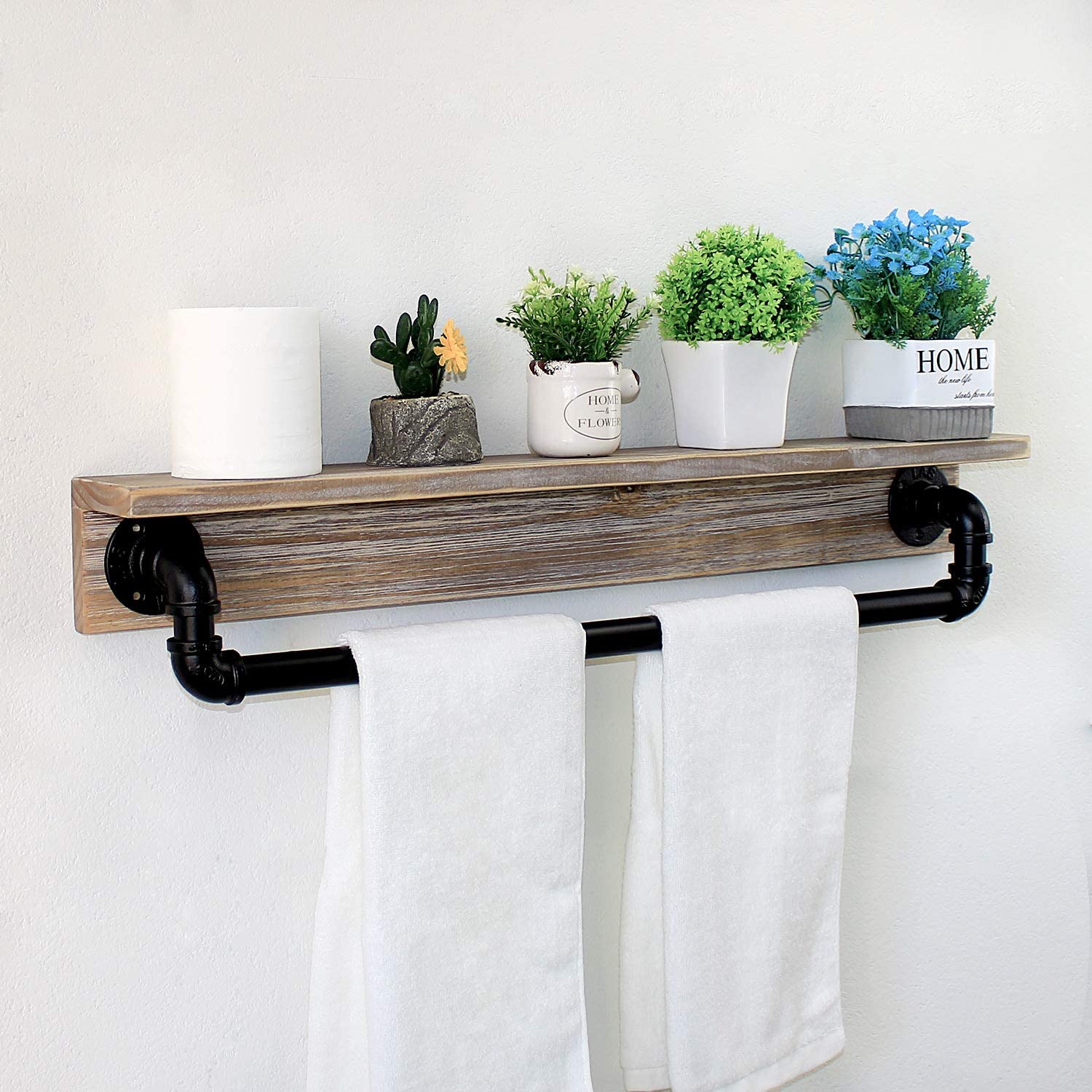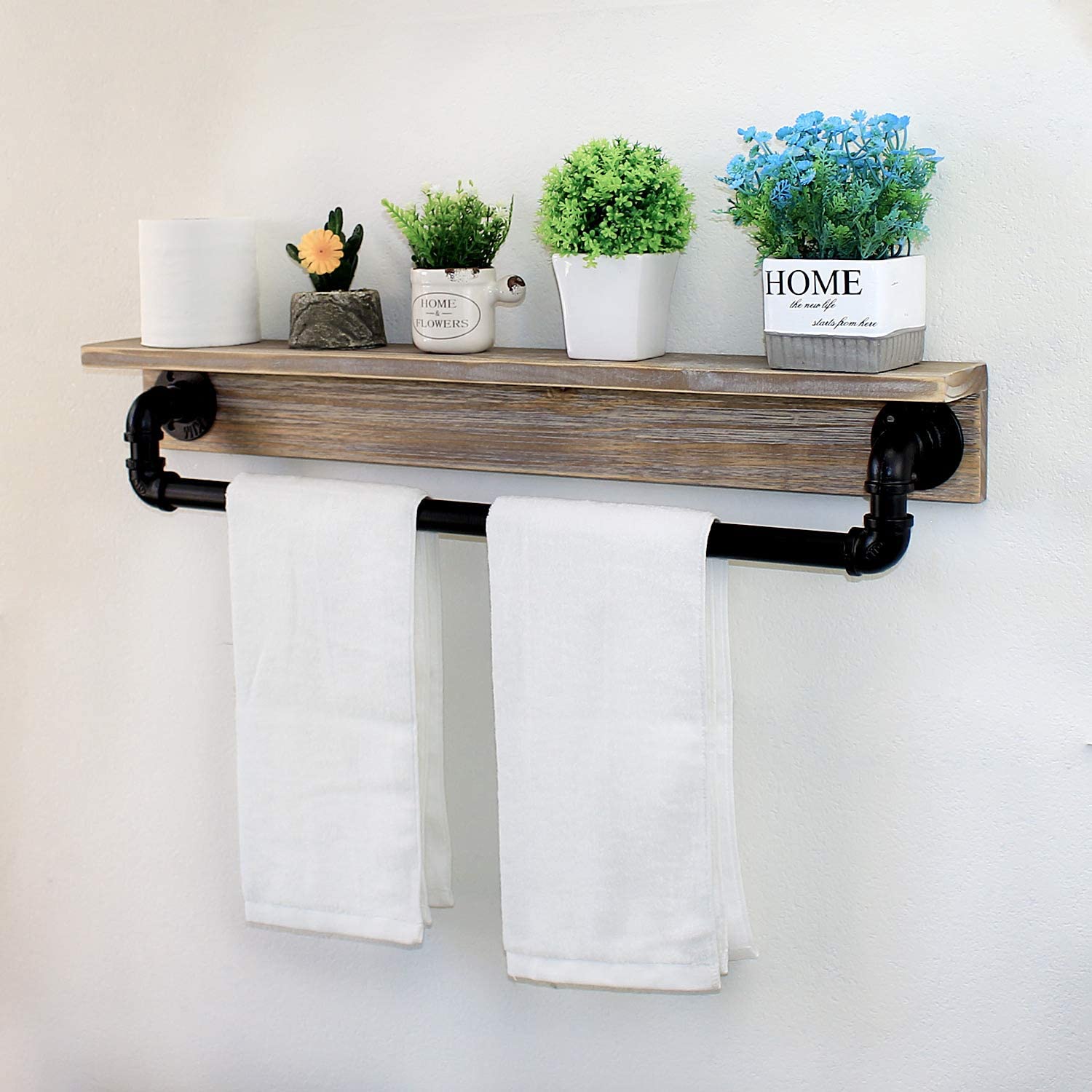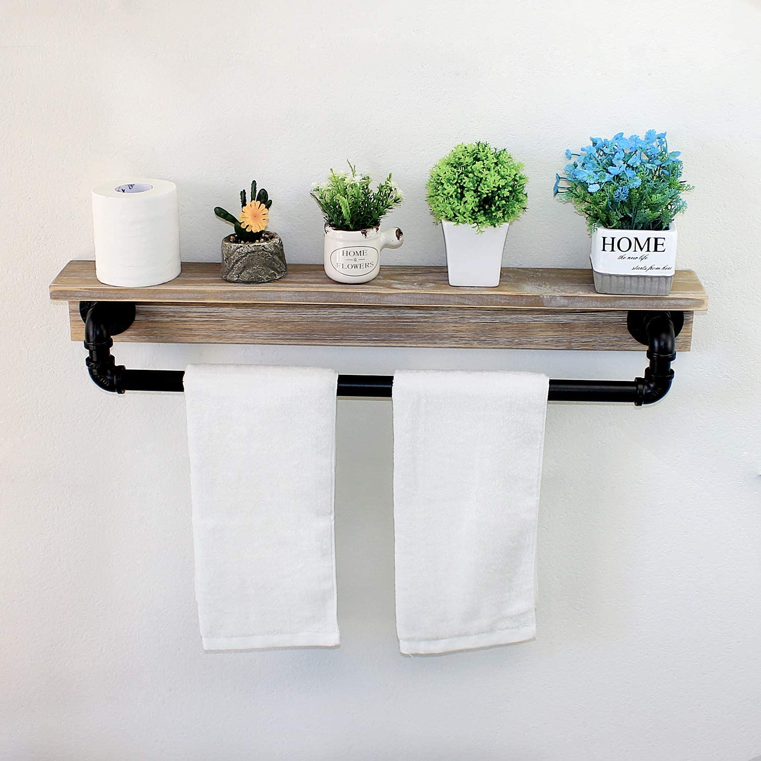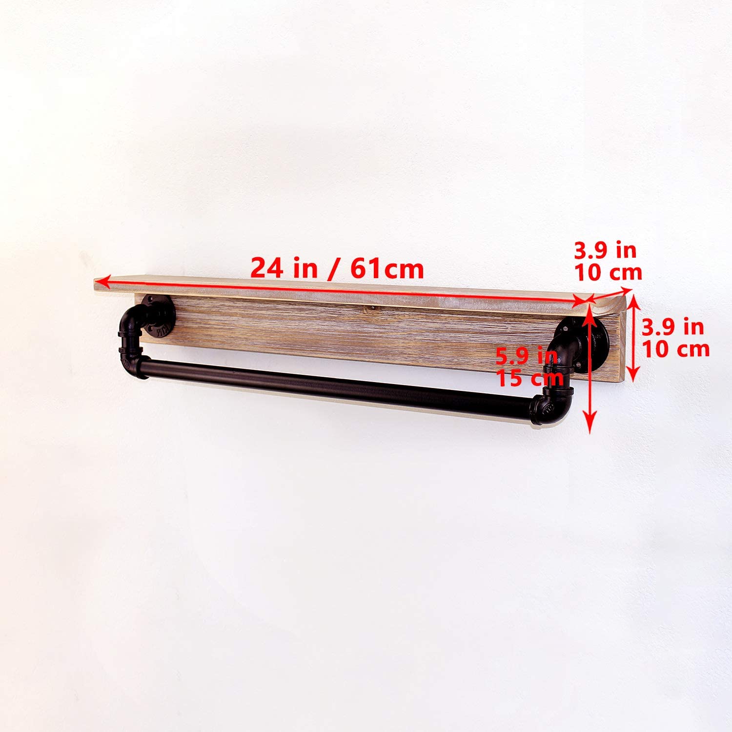 Womio Rustic Towel Racks with Towel Bar,30" Farmhouse Bathroom Shelves Wall Mounted,Industrial Pipe Home Decor Wall Shelf,Floating Shelves